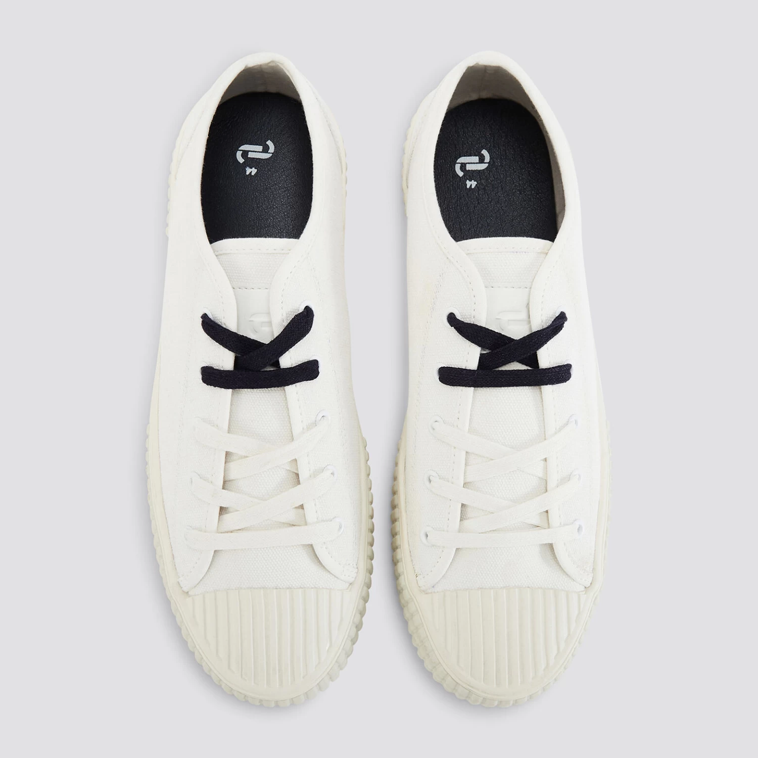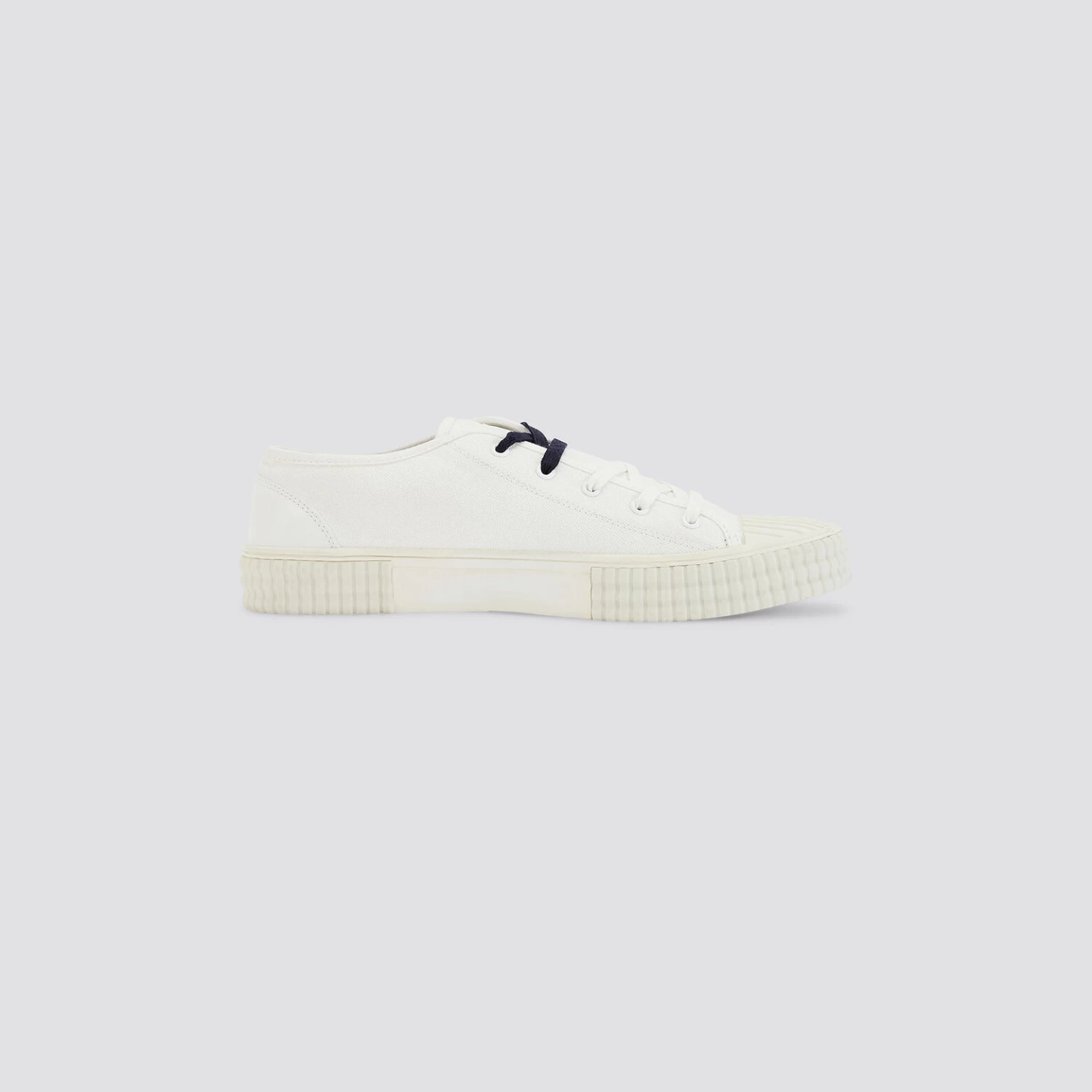 Ces baskets basses sont en toile unie blanche. Elles possèdent deux paires de lacets : une paire bleu marine et une paire blanche et conviennent à toutes les tenues.