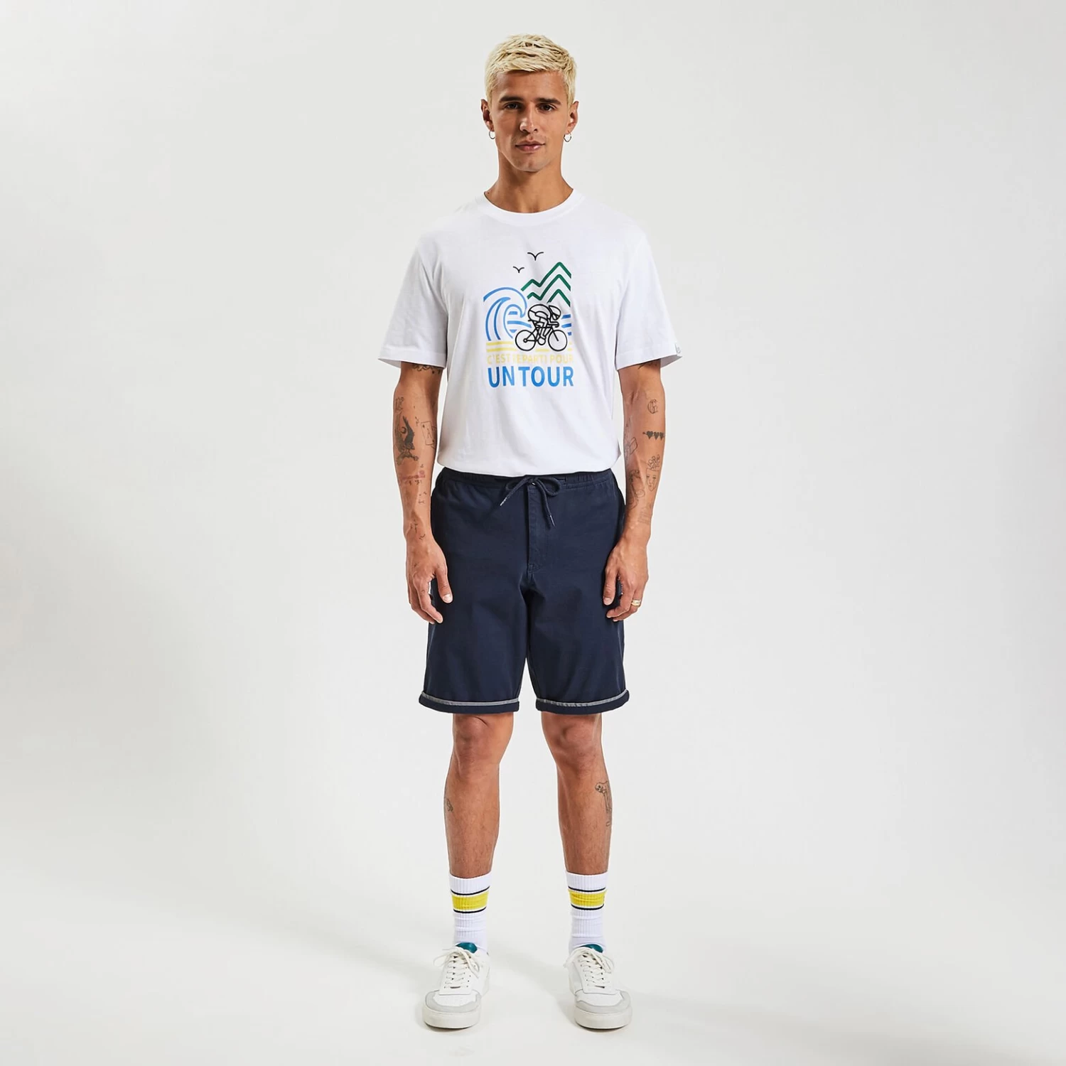 Jules est de nouveau fournisseur officiel du Tour de France. Julesvous propose ce bermuda parfait pour vos sorties vélo estivales puisqu’il est extrémement élastique. Agréable et facile à porter, il possède en plus une bande réfléchissante sur l’ourlet. Vous pouvez sortir en toute sécurité. La petite touche mode se trouve dans les poches avec l’imprimé micro vélo à l’intérieur.