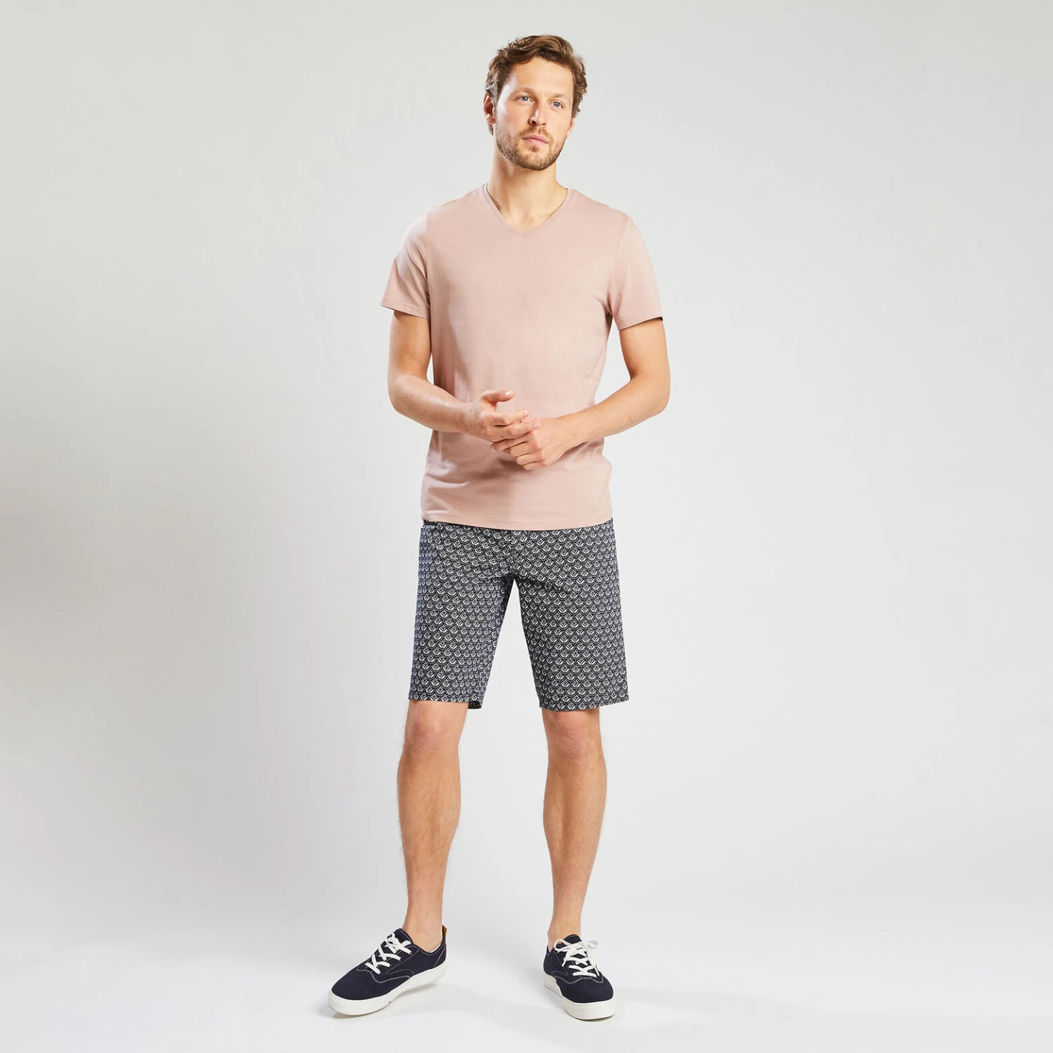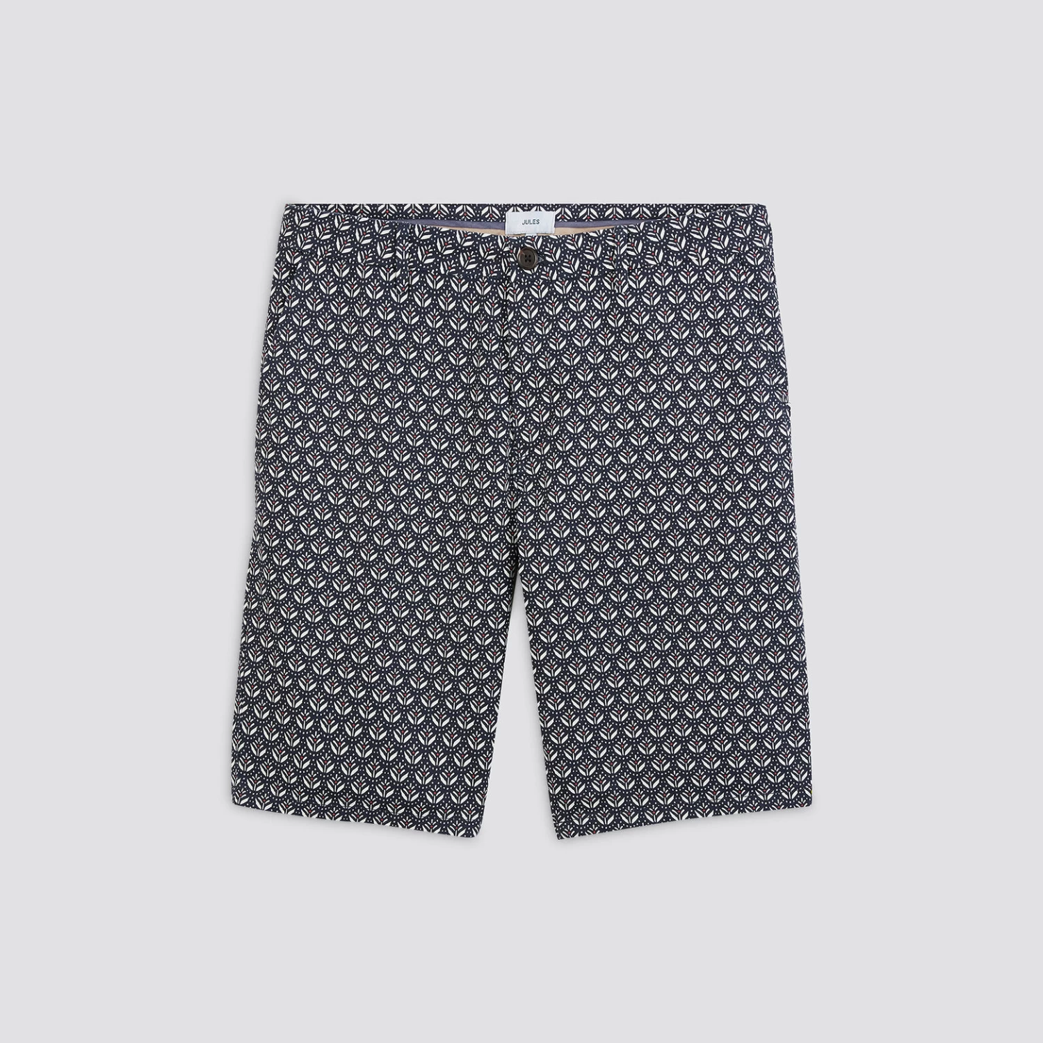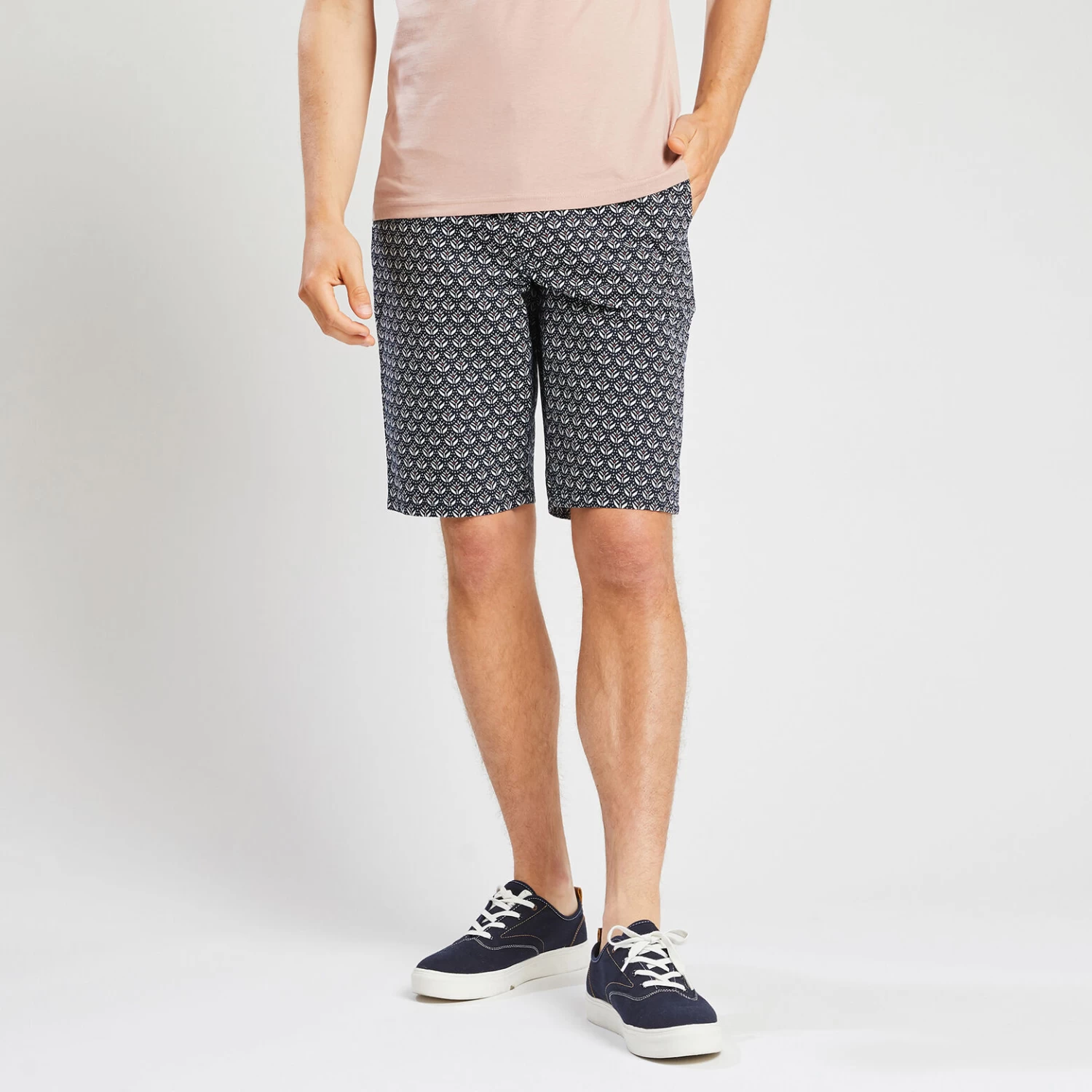 Ce bermuda chino imprimé ethnique possède 2 poches italiennes avant, 2 poches passepoilées boutonnées arrière, une fermeture zippée et un bouton de fermeture avant.