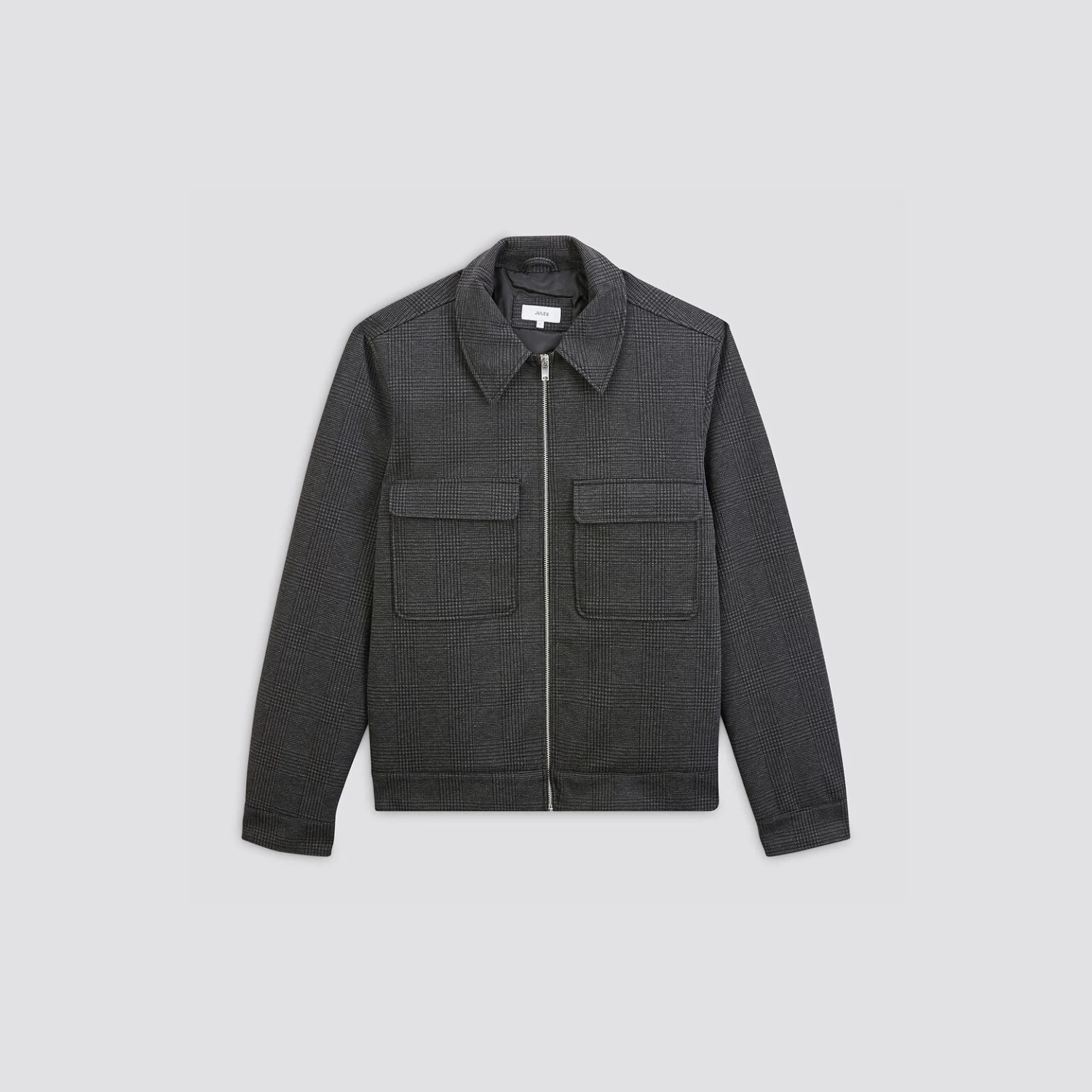 Ce blouson à carreaux dispose d’un col chemise, d’une fermeture zippée, de deux poches à rabat poitrine et d’une poche intérieure. Le bas de corps et les bas de manches sont légèrement resserrés.