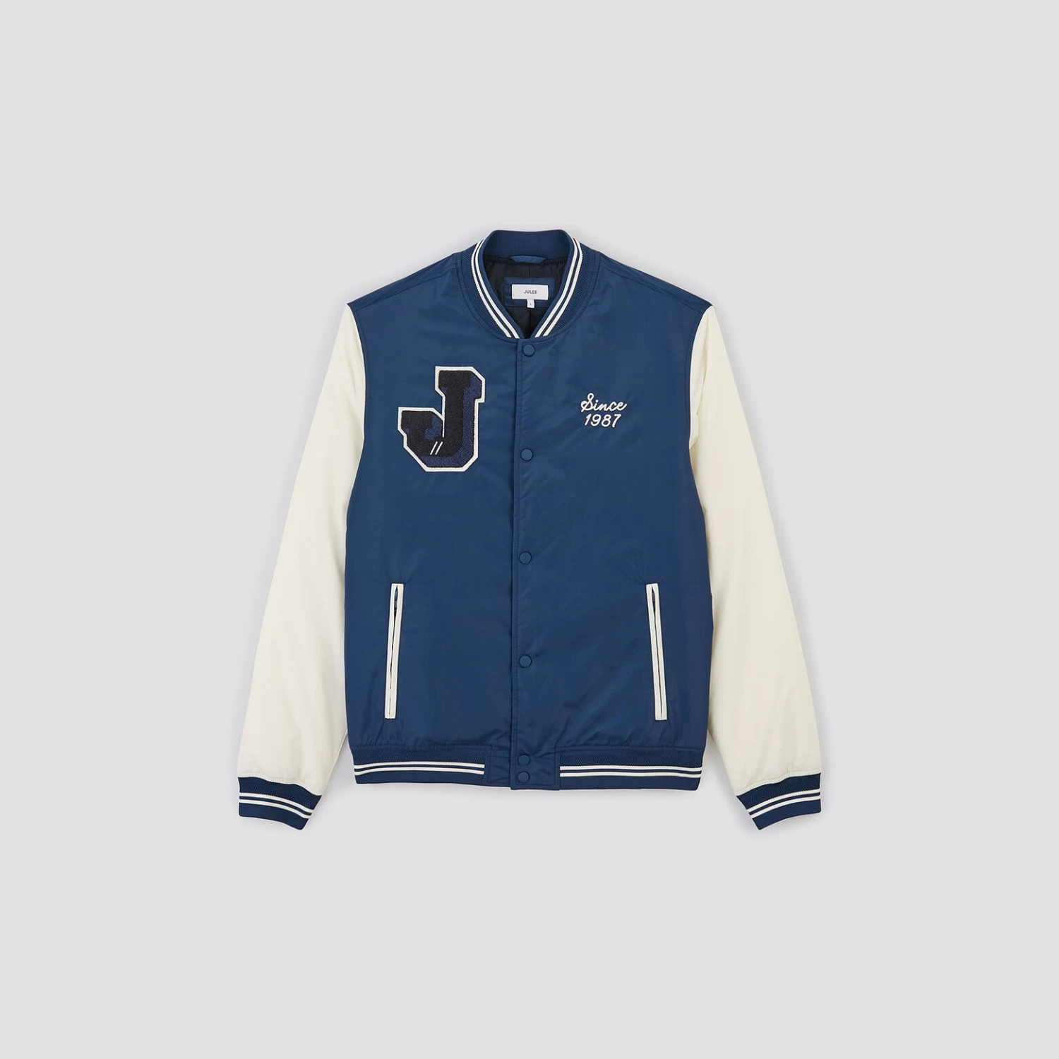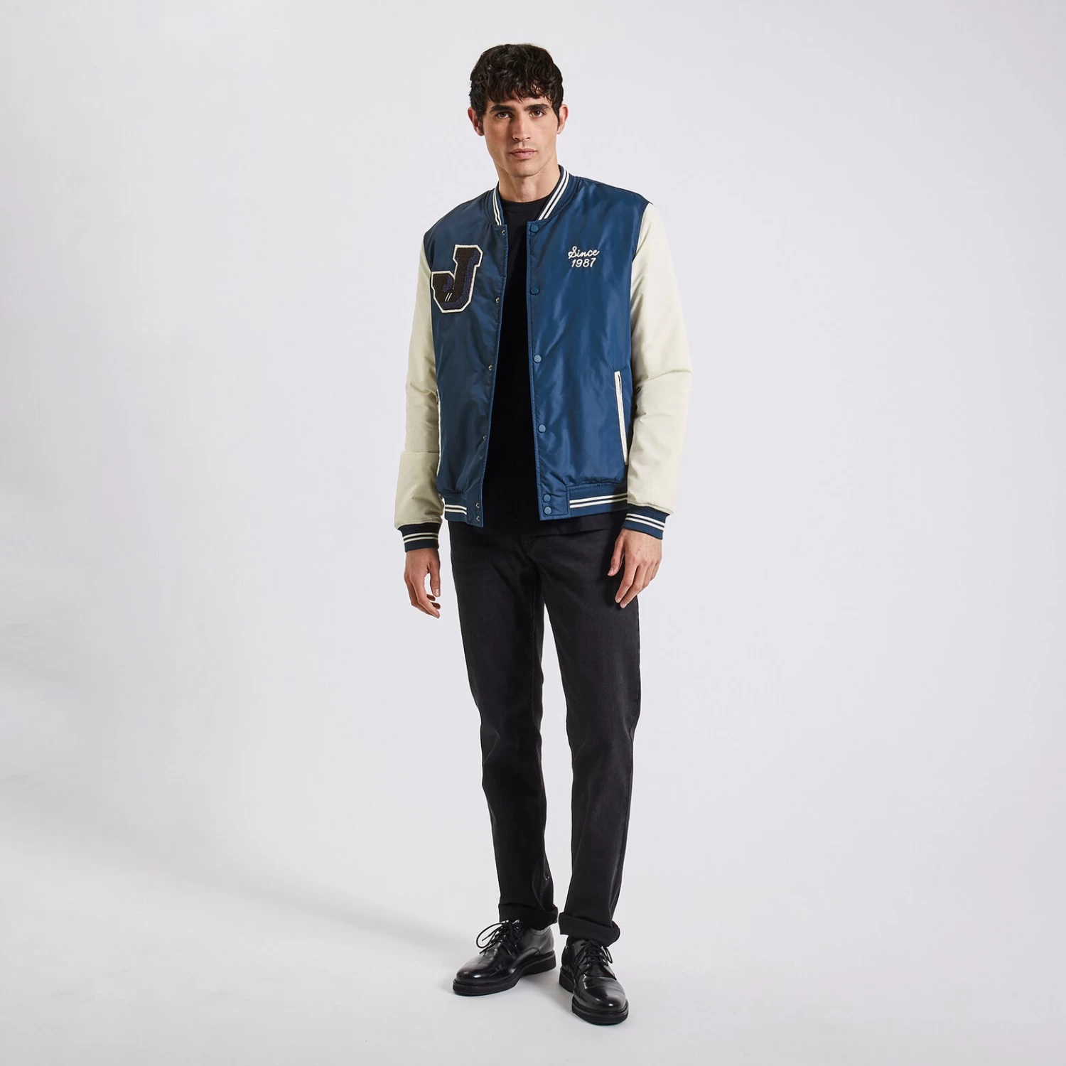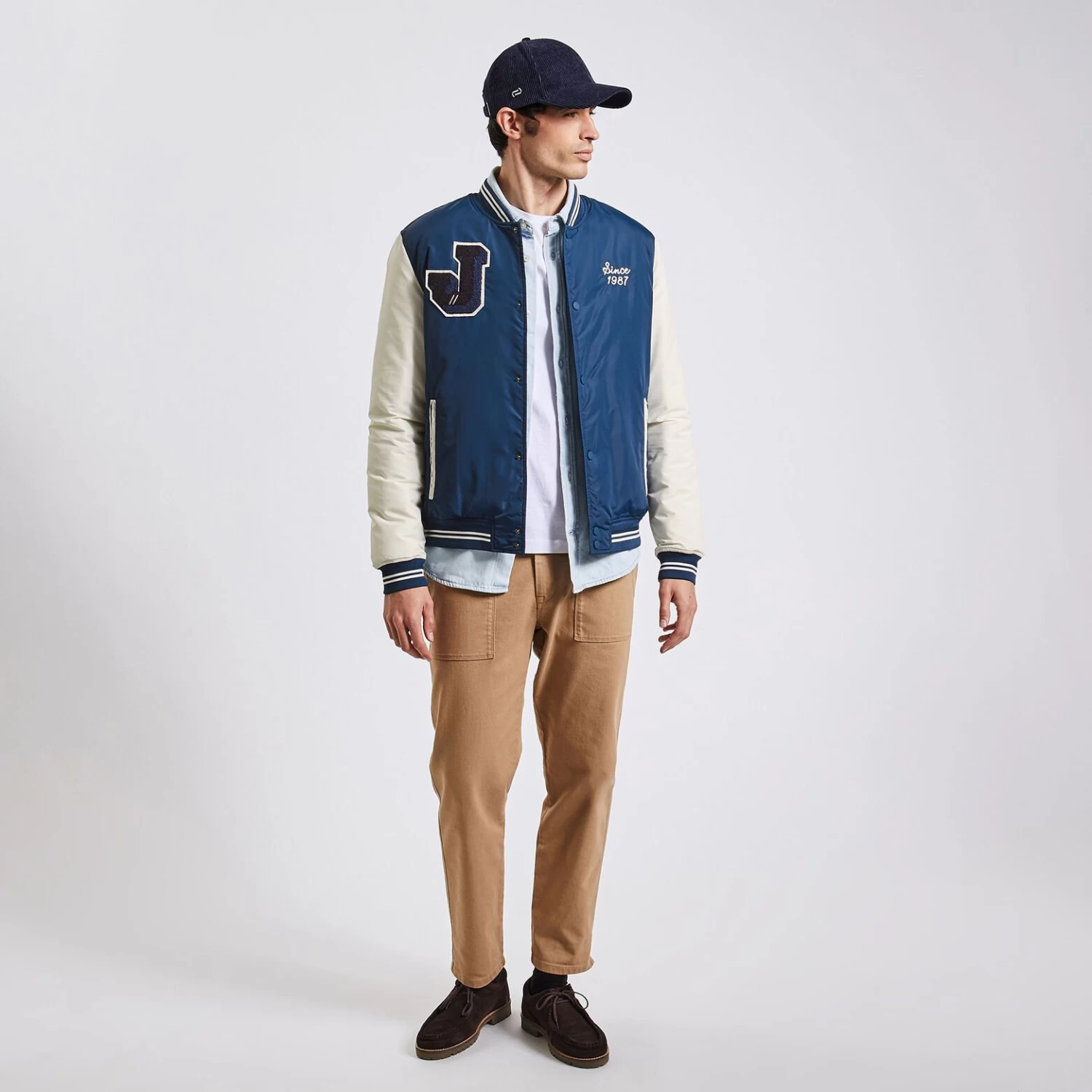 Ce blouson remet au goût du jour le style campus universitaire. Au-dessus d’un pull en mode veste légère, le style est toujours au rdv !