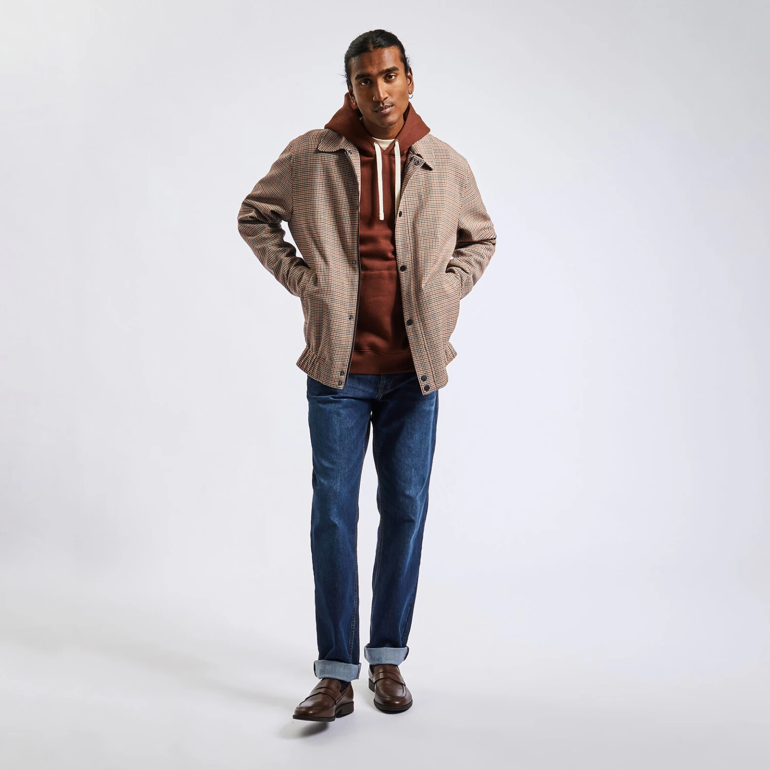 Confectionné dans un très beau tissu pied-de-puce, ce blouson se porte avec un pantalon chino ou un jean, pour une touche chic quelque soit votre look.