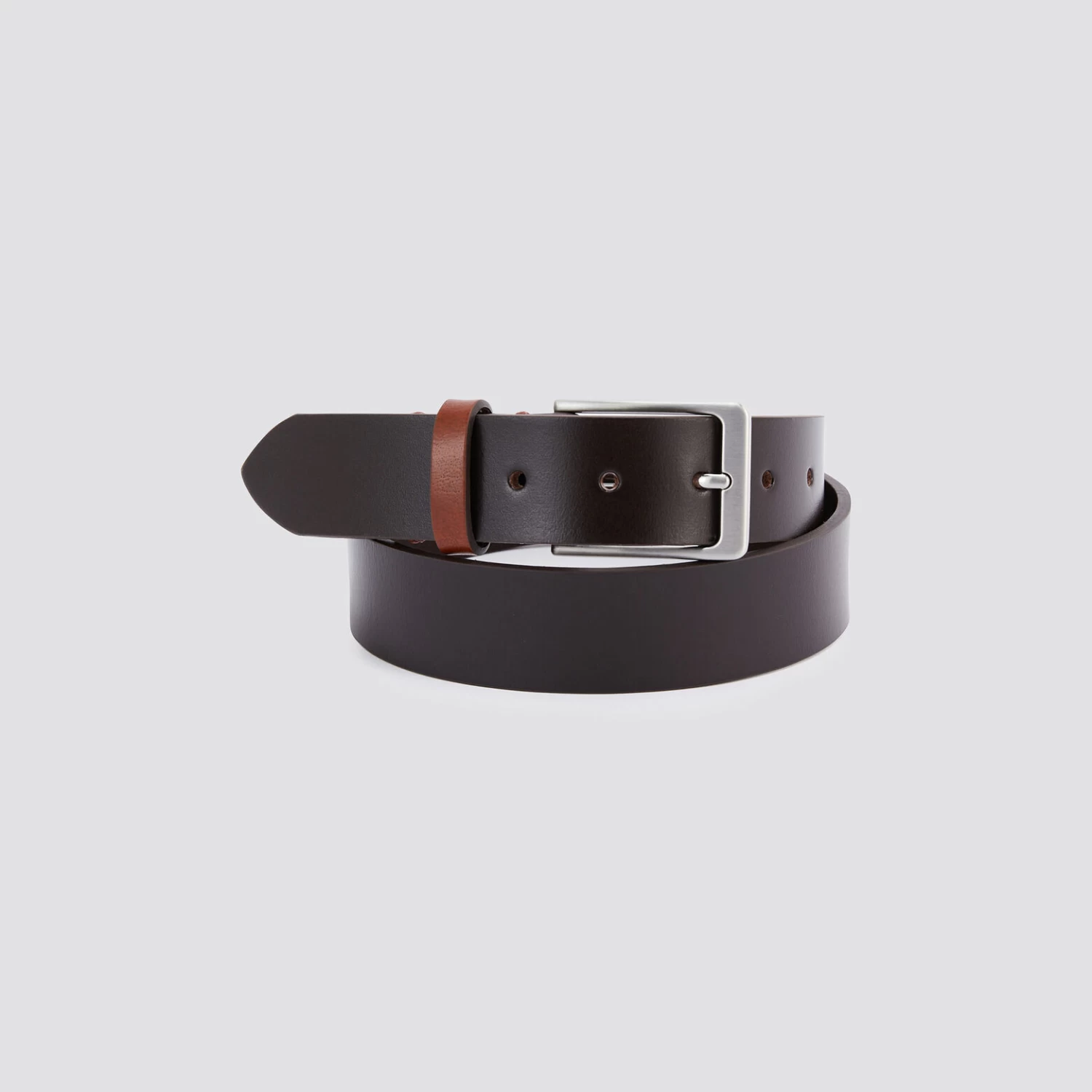 Idéale à porter avec un jean ou un pantalon de costume, cette ceinture en cuir pleine fleur, avec boucle métallique, donne une allure moderne à votre tenue.