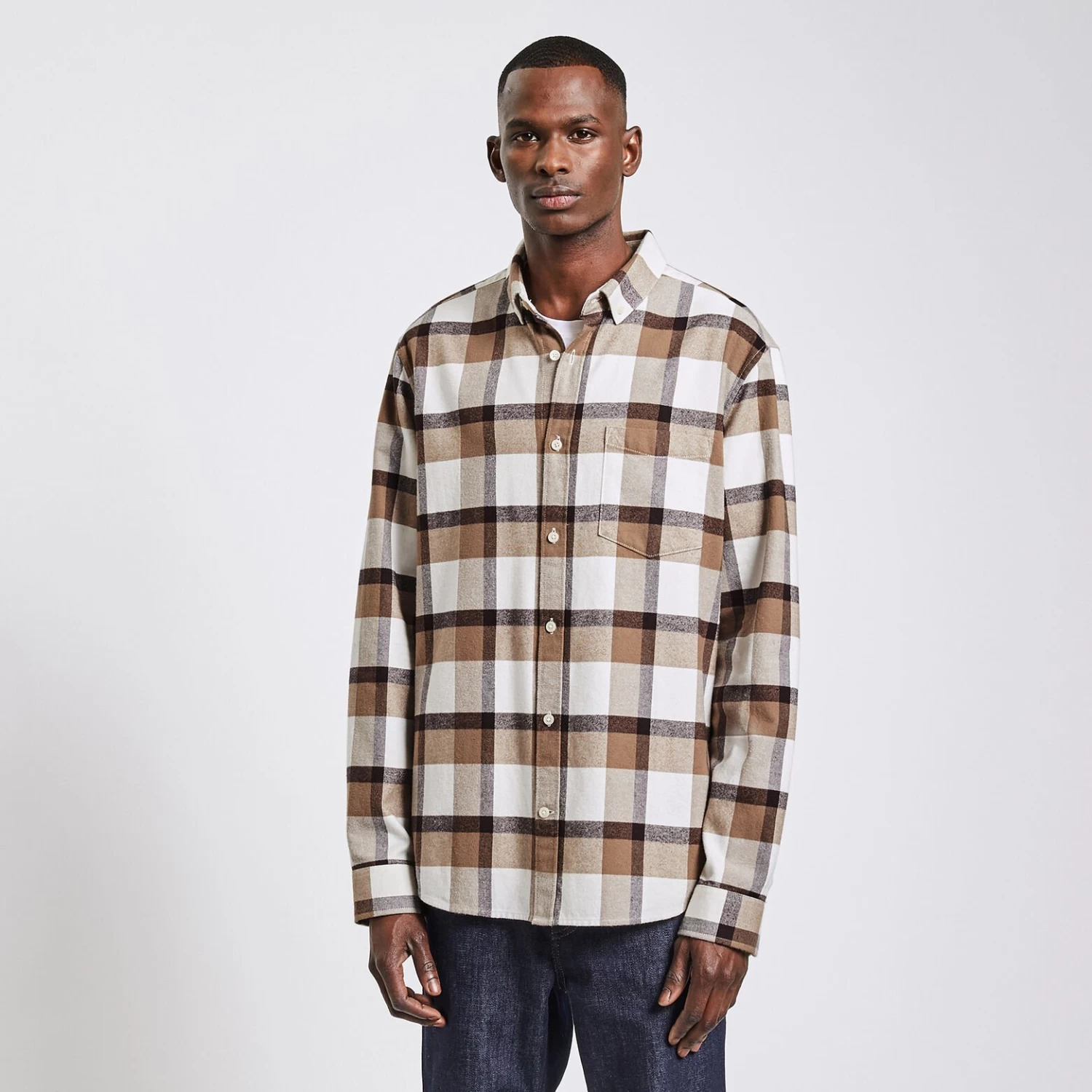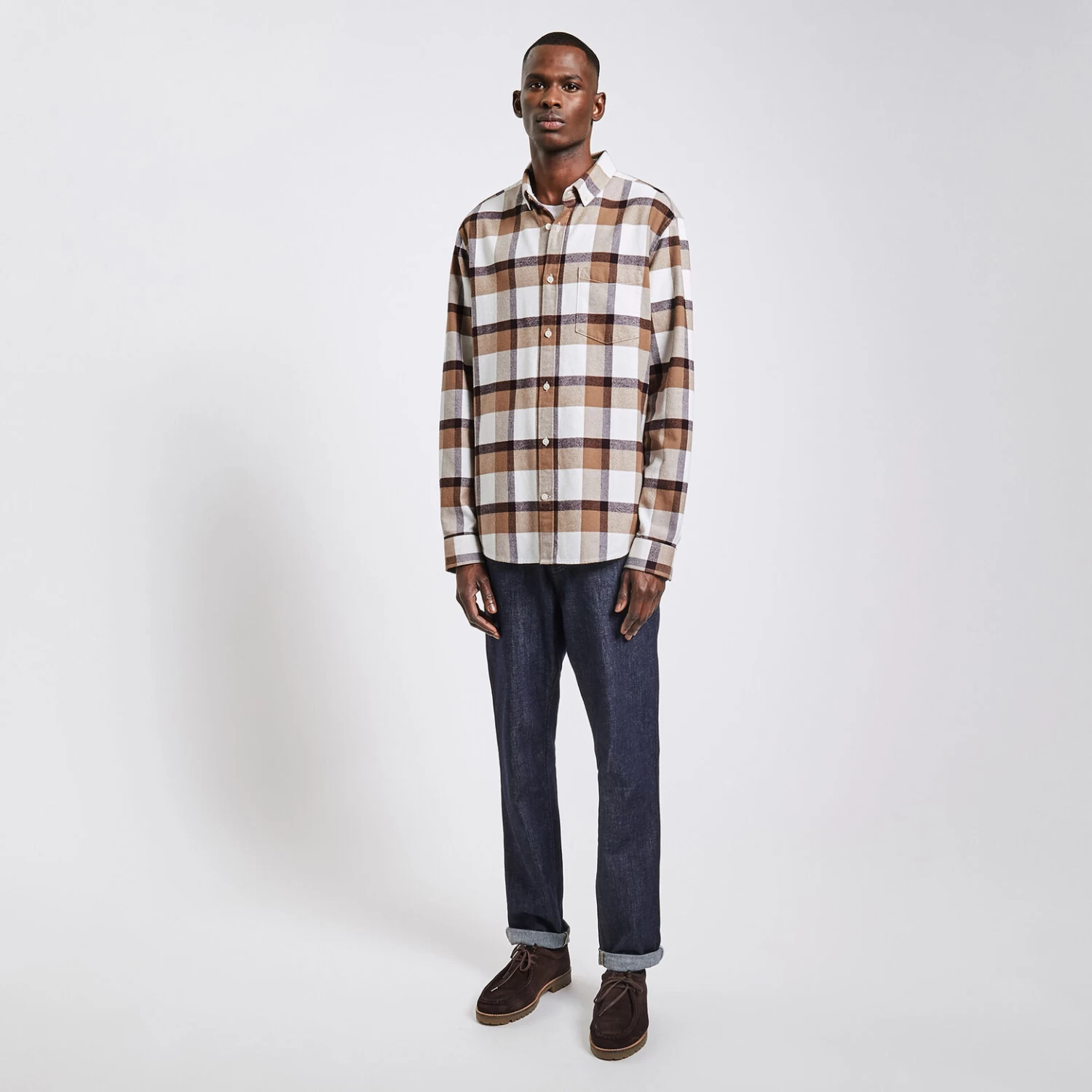 Cette chemise à carreaux à manches longues se porte seule ou au dessus d’un tee-shirt, pour un style décontracté.