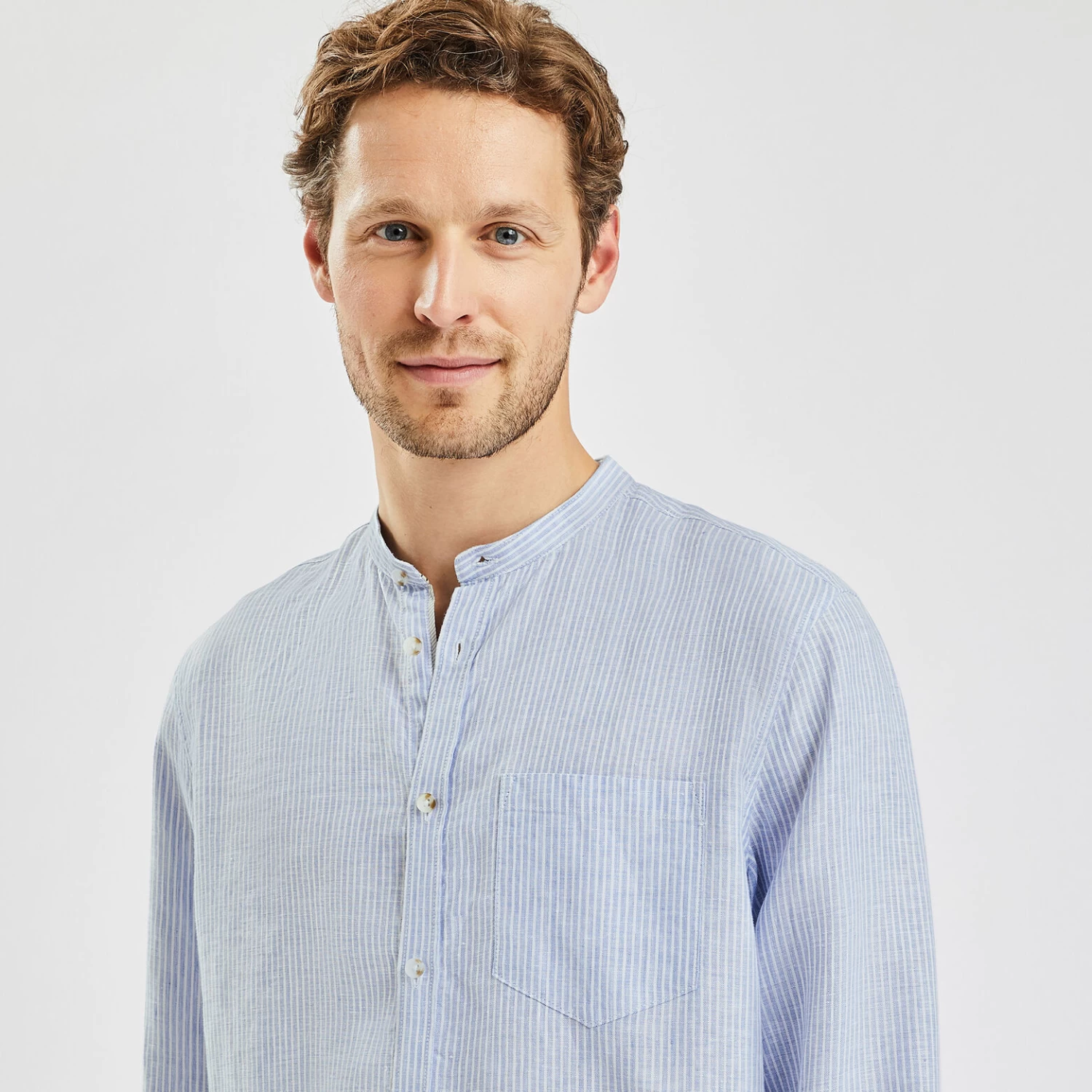 - Col mao, forme ronde avec un bouton, sans rabat