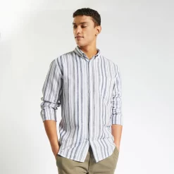 Cette chemise à rayures en coton lin, thermorégulant, associe légÚreté et douceur au quotidien.