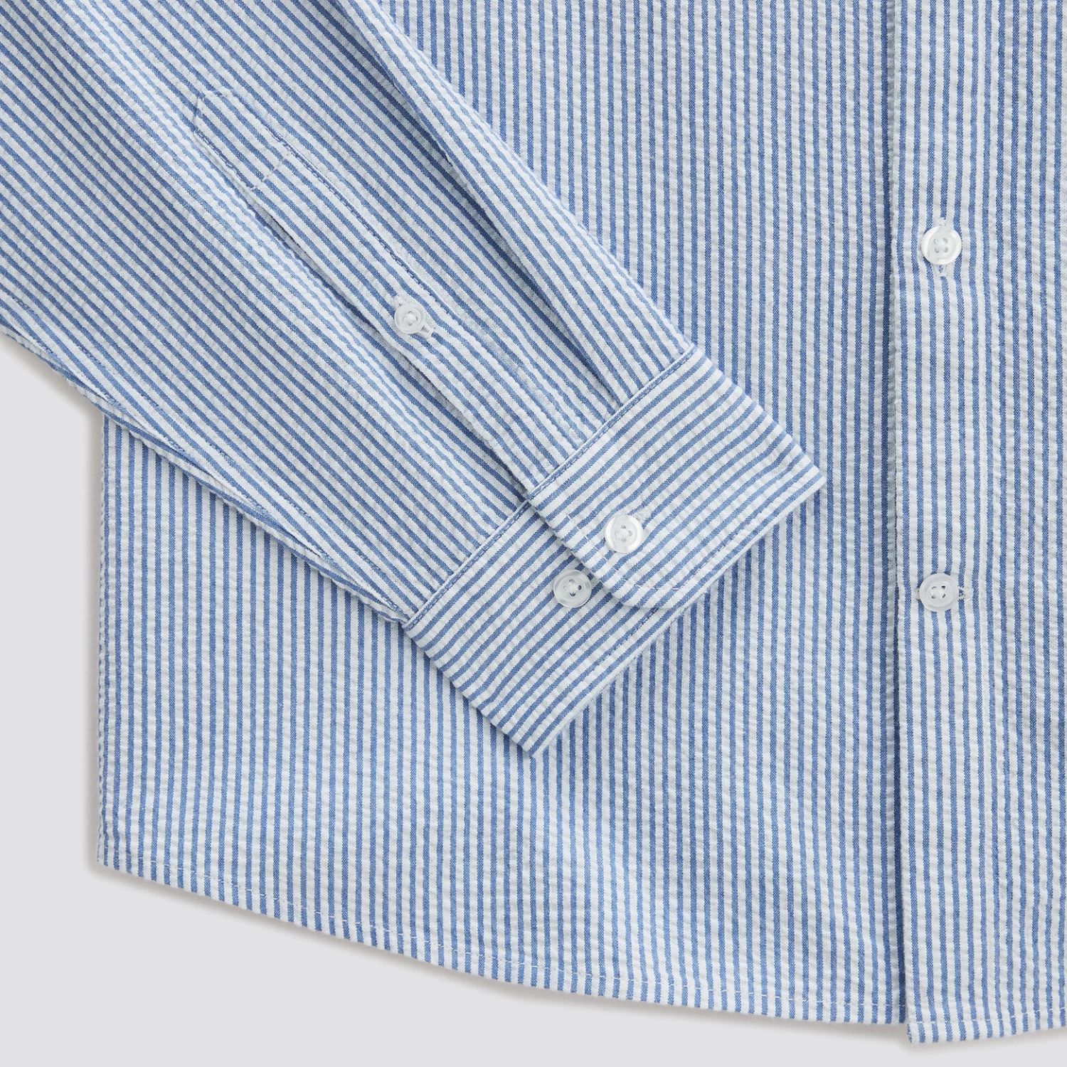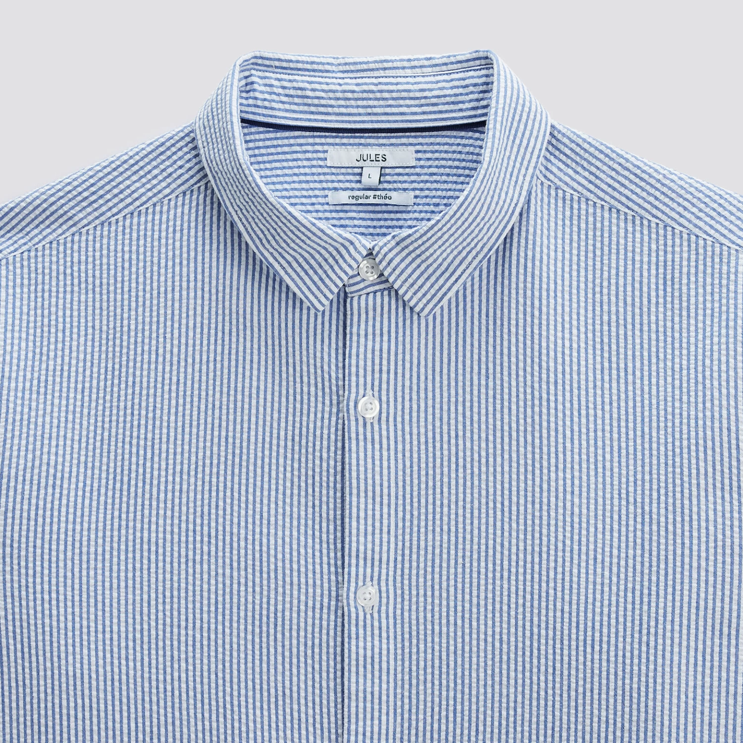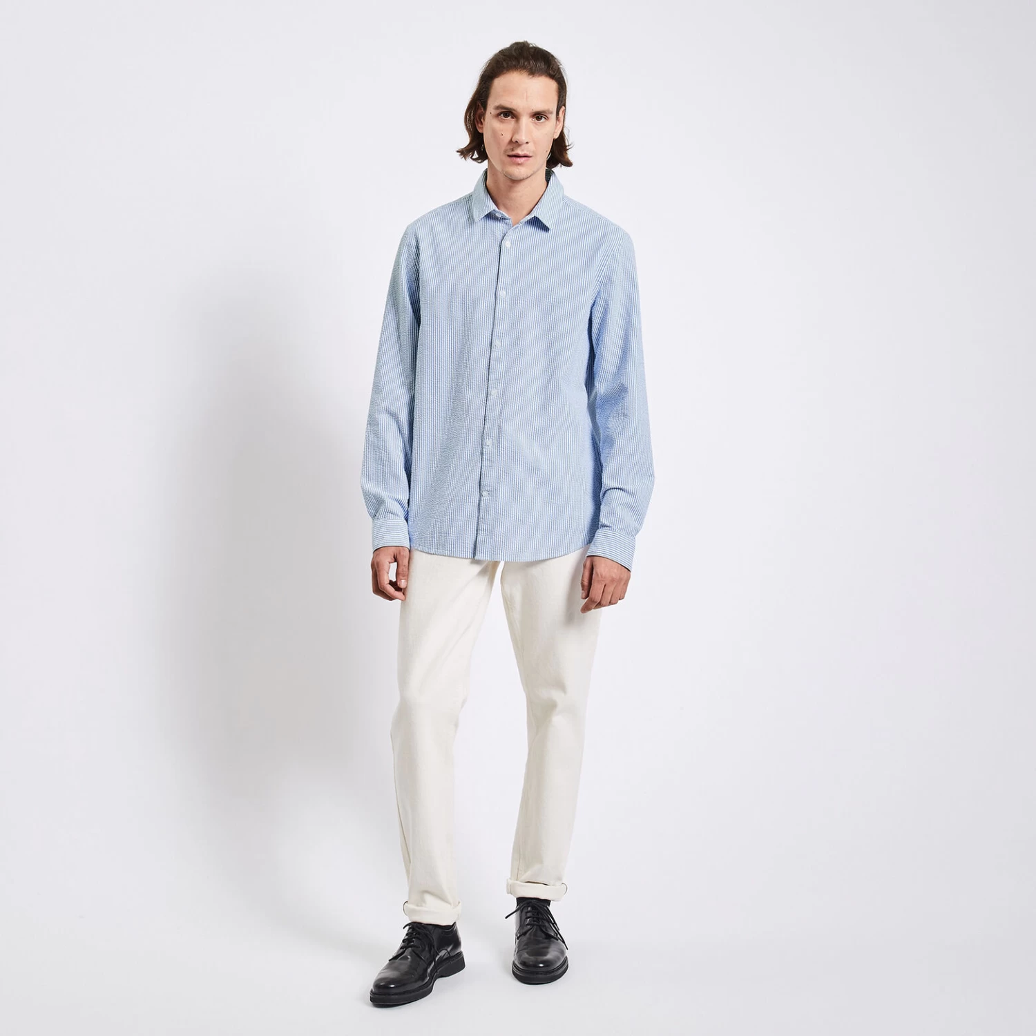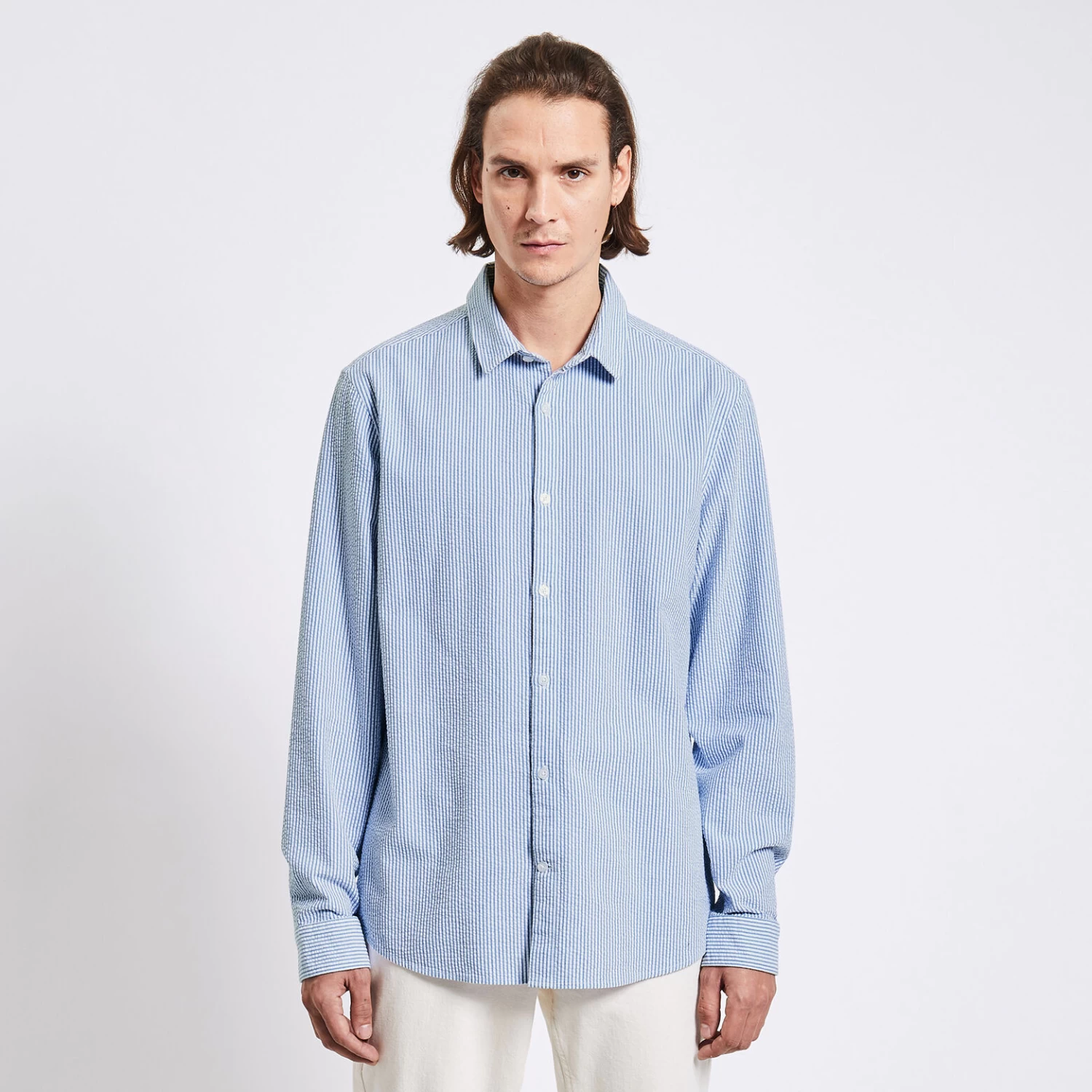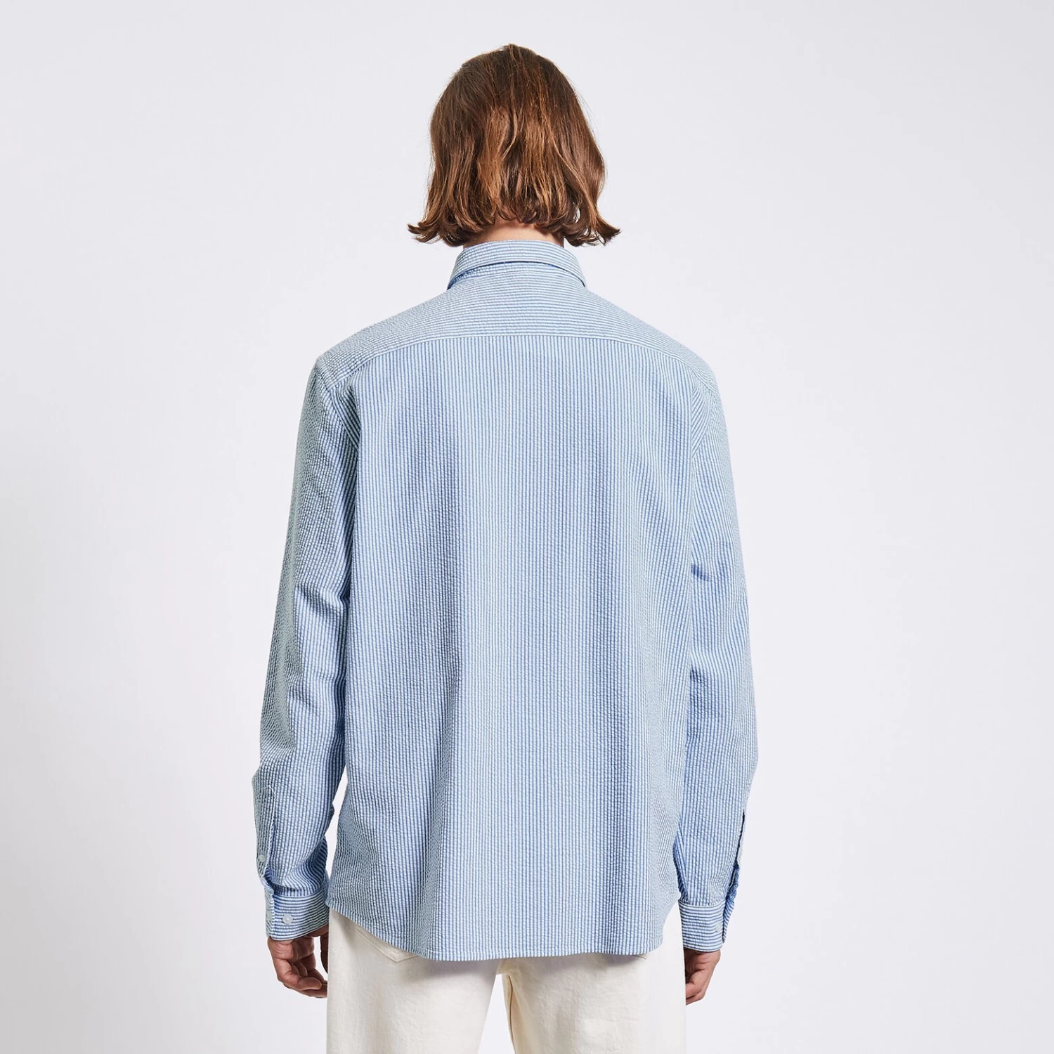 Confectionnée dans un coton seersucker, tissu gaufré, cette chemise à rayures fait partie des indispensables du vestiaire masculin !