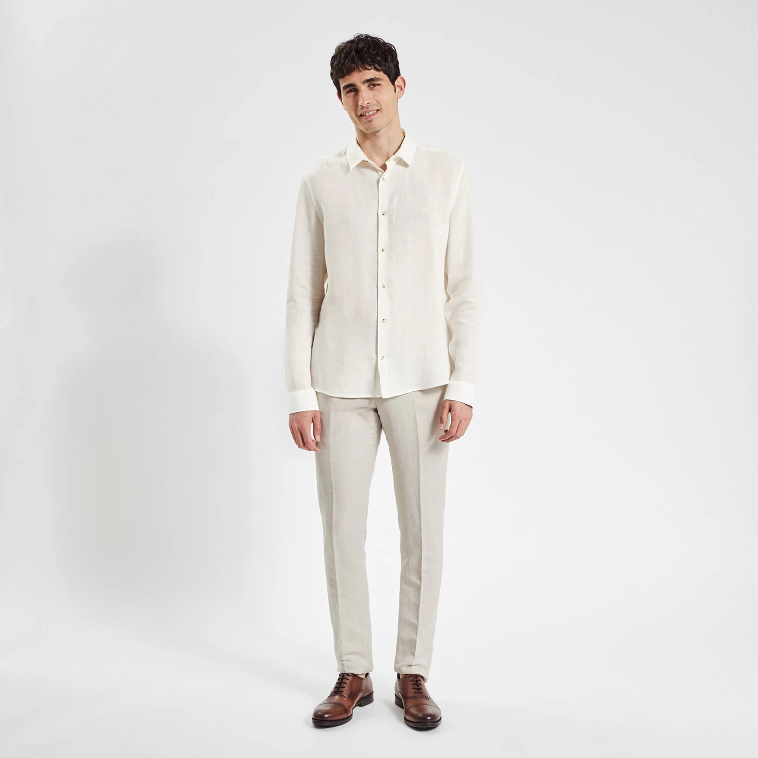 - Passepoil au niveau du col en 100% lin fabriqué en France