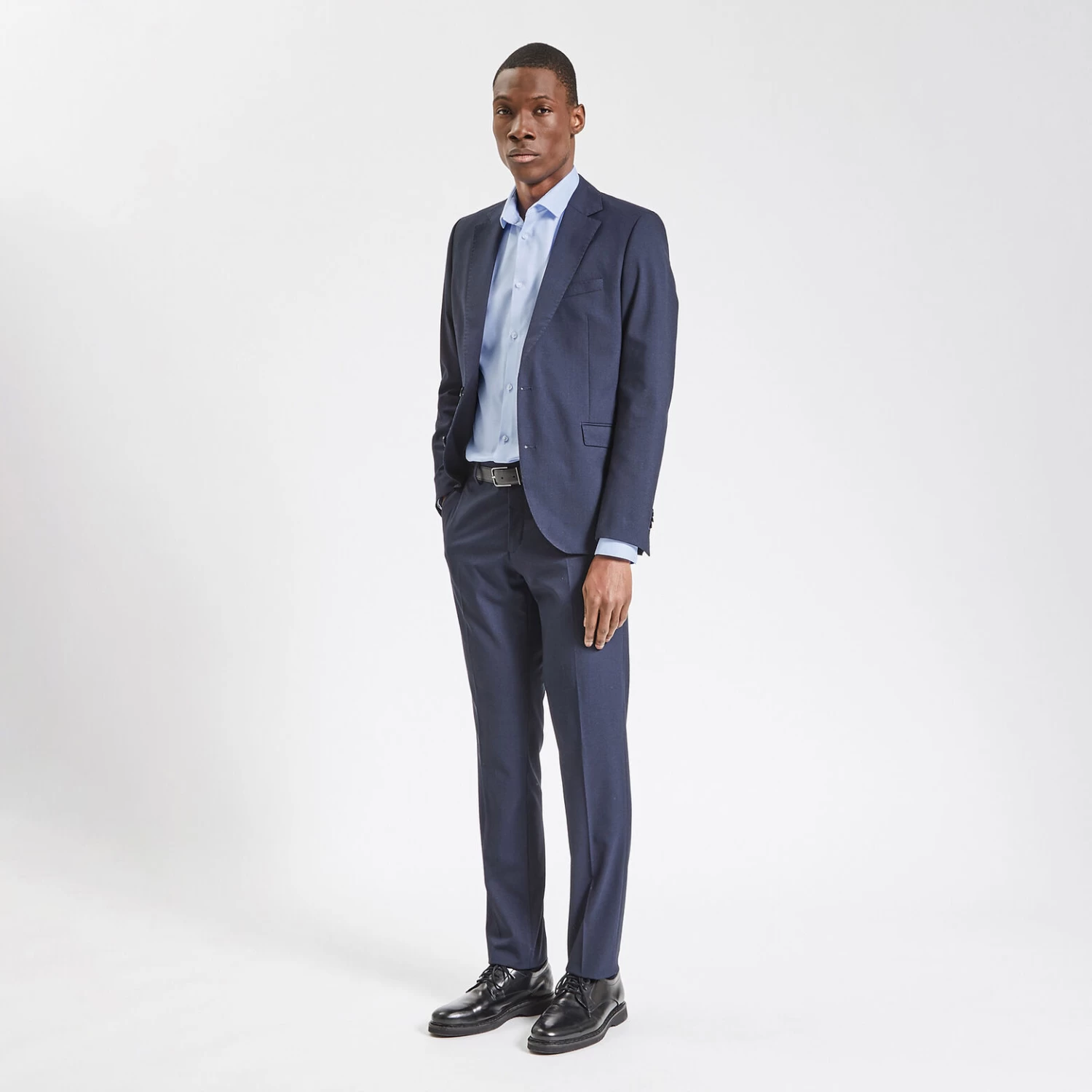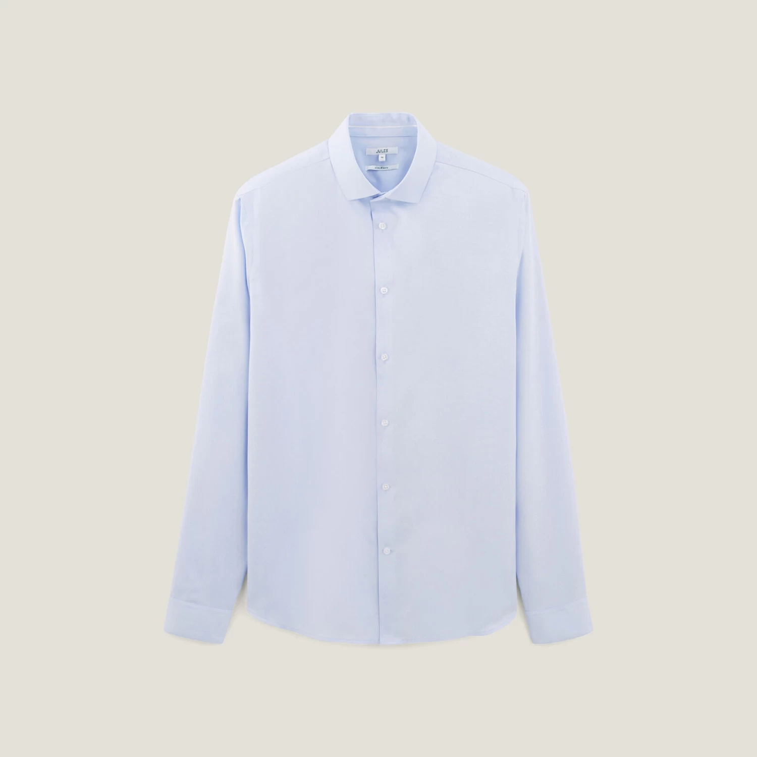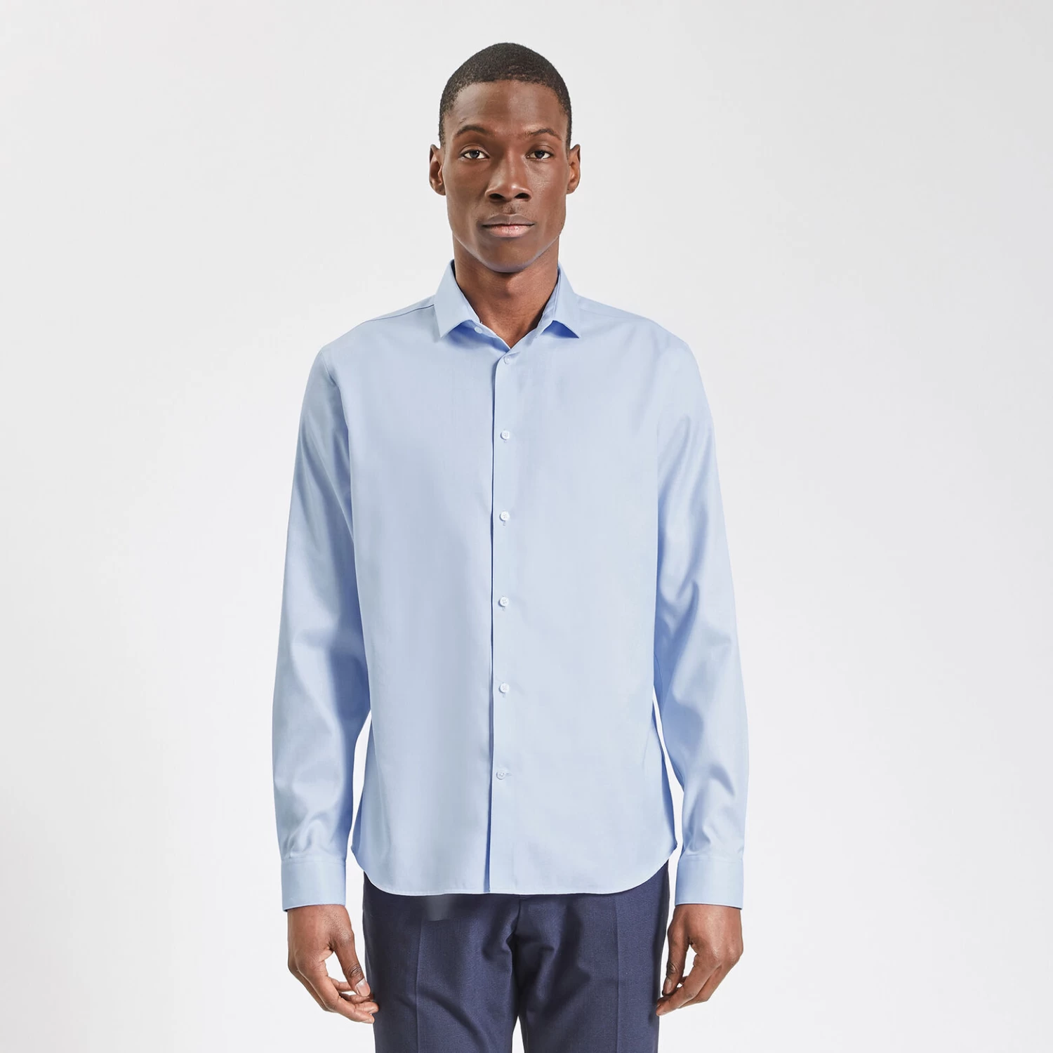 Cette chemise slim sans repassage, en coton, est un bon basique à avoir dans son dressing. Avec un jean, avec un chino, avec un pantalon de costume et même avec un bermuda, elle s’associe avec tout. Pour ajouter une touche plus personnelle, vous pouvez ajouter des boutons de manchette.