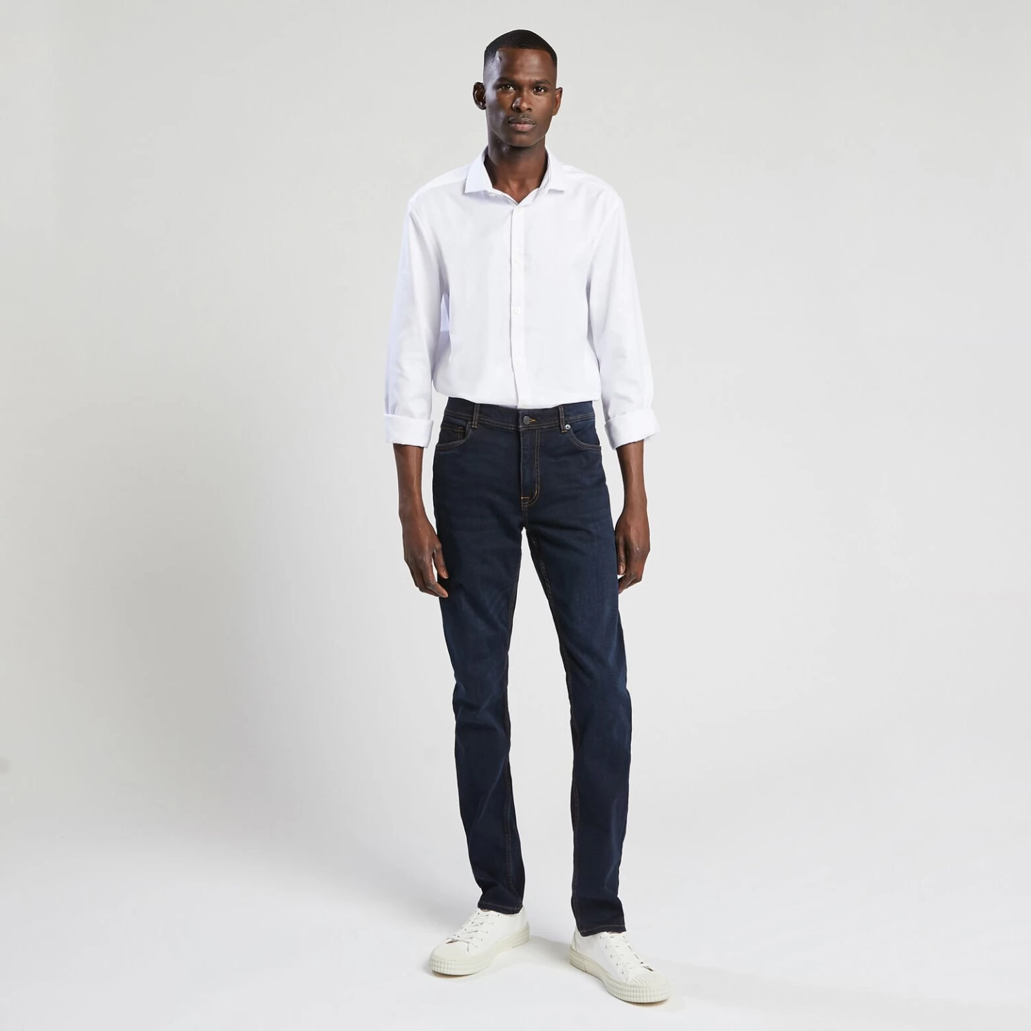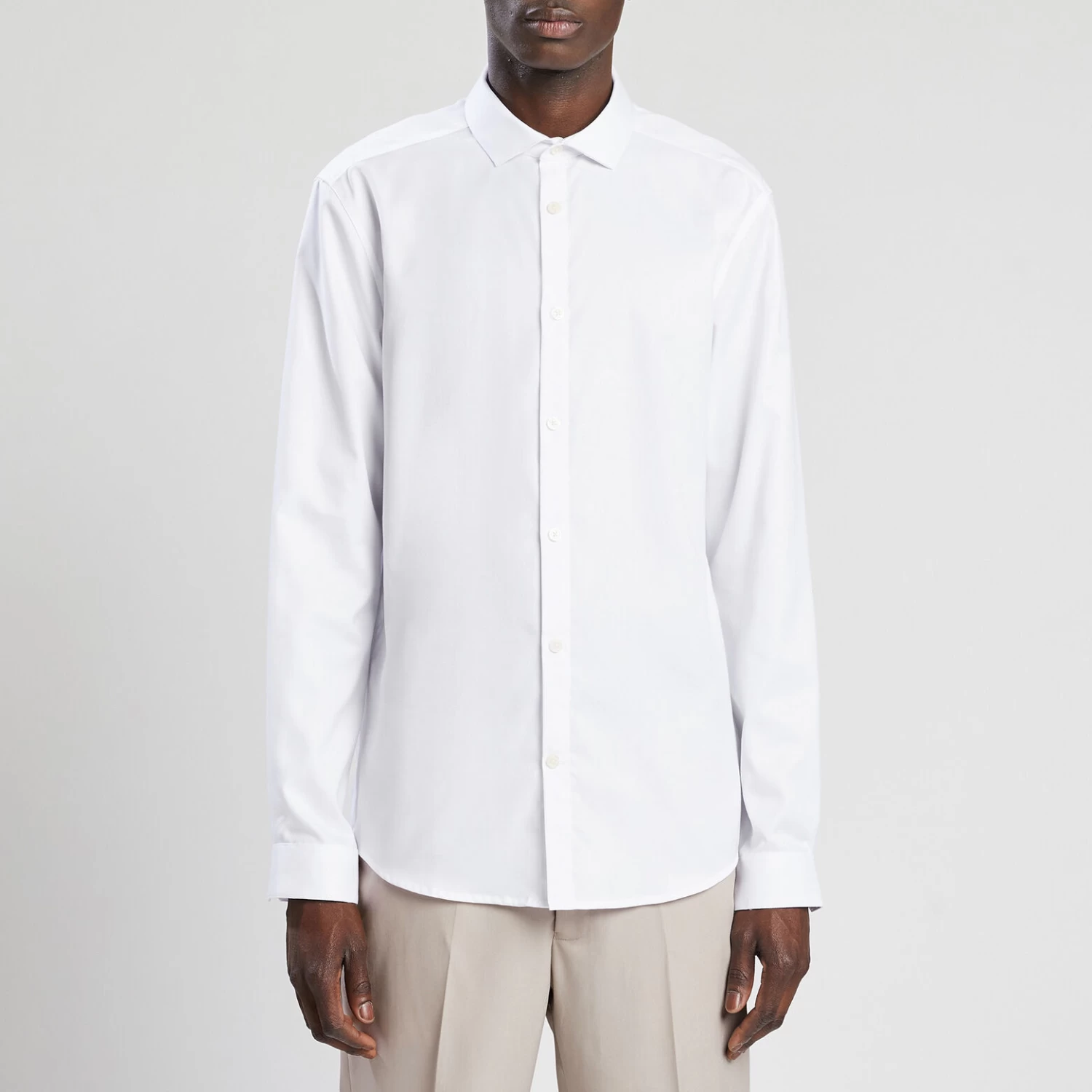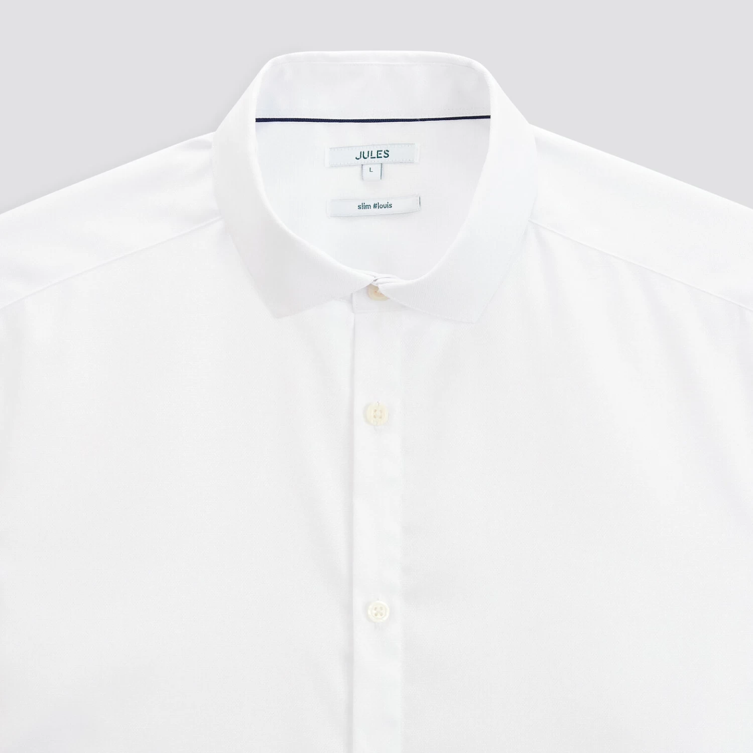 Simple mais élégante, cette chemise unie en coton peut se porter aussi bien avec un chino qu’un pantalon de costume !