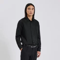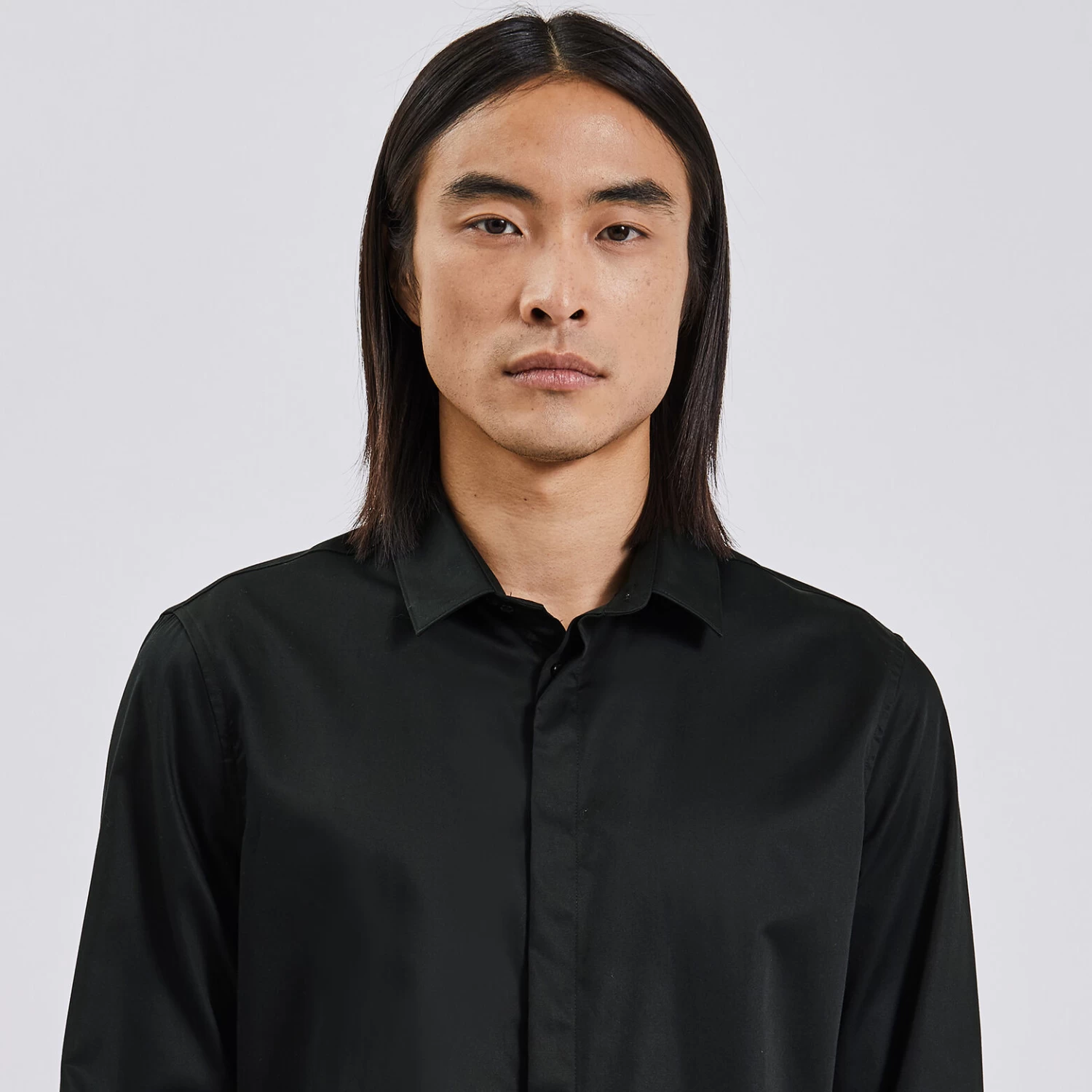 Cette chemise est confectionnée en satin de coton qui allie la douceur du coton à l¿aspect uni, lisse et brillant de son tissage. Elle possède une fermeture boutonnée sous patte, idéale pour les occasions élégantes.