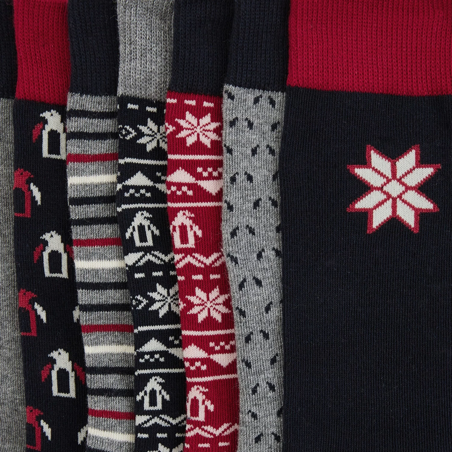 Idée originale pour offrir, ce coffret cadeau de 7 paires de chaussettes confectionné dans une maille douce et très agréable à porter apporte une touche raffinée à vos tenues avec ses motifs de Noël en jacquard.