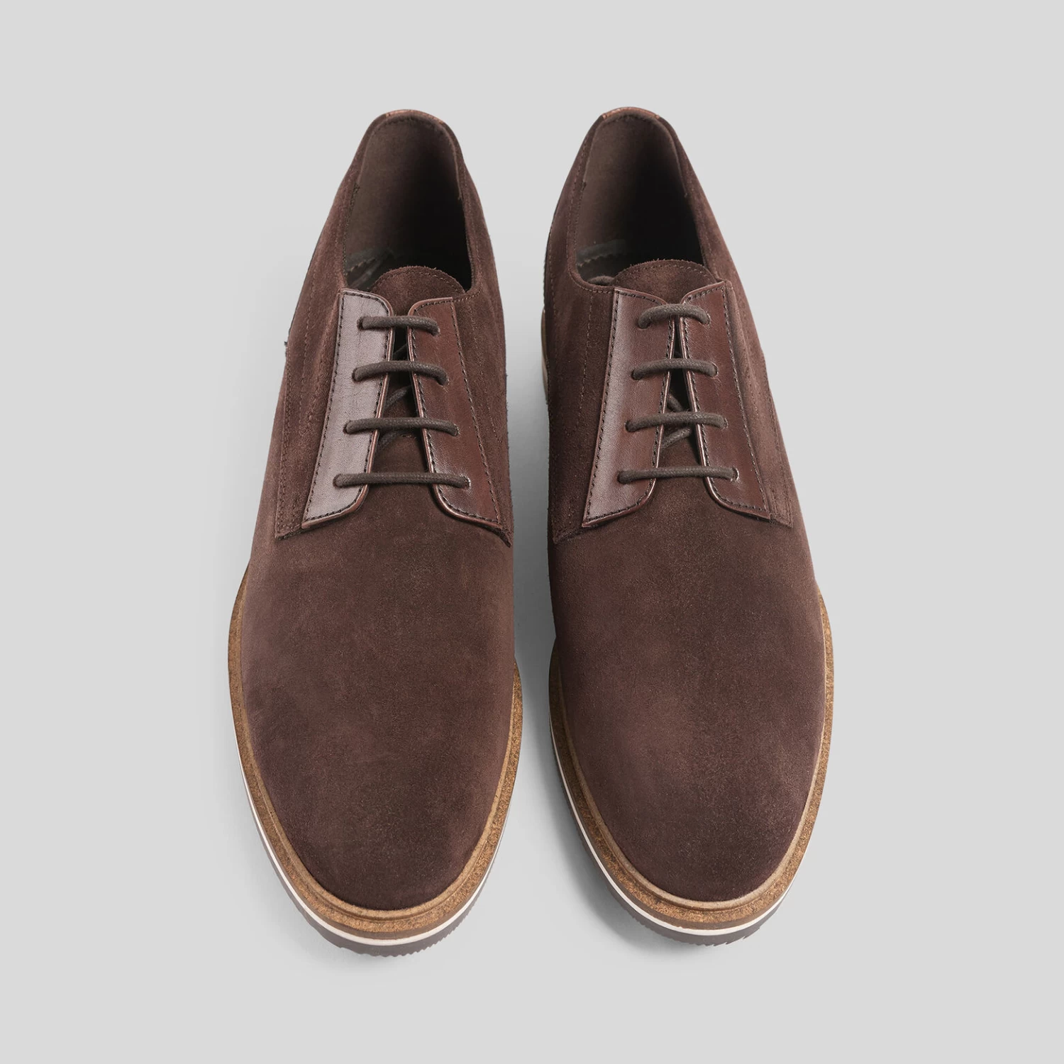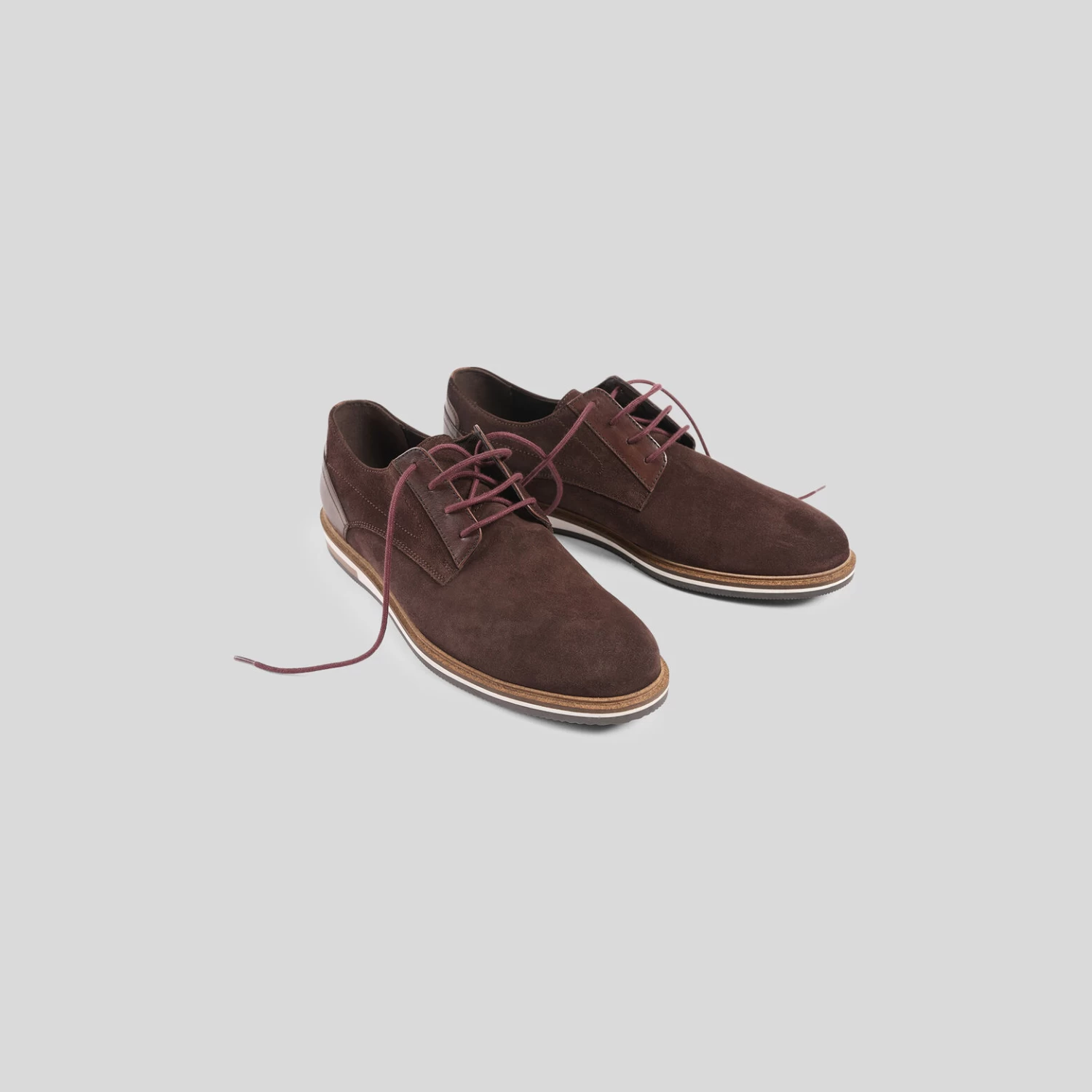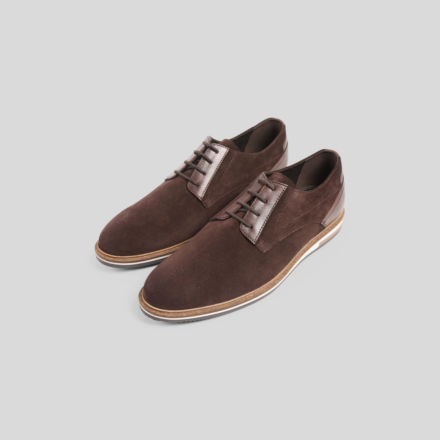 Ces chaussures de ville Derby, en bimatières croûte de cuir et cuir, donneront un style décontracté mais élégant à votre tenue. Elles se portent très bien avec un pantalon chino. Existe en marine ainsi qu’en camel avec des détails marine.