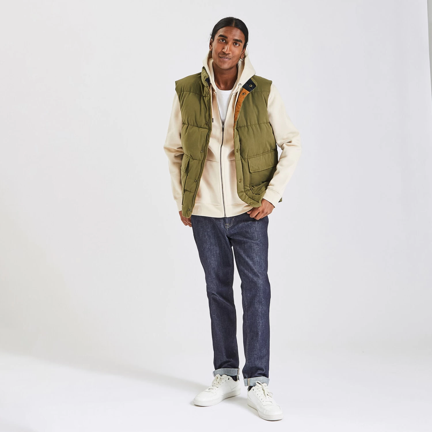 Ce produit contient un rembourrage en fibres 100% polyester recyclé, provenant du recyclage de bouteilles en plastiques usagées ou du recyclage de chute de tissus issus de la production d’autres vêtements. L’utilisation de fibres recyclées permet d’économiser les ressources nécessaires à la production de matières vierges.