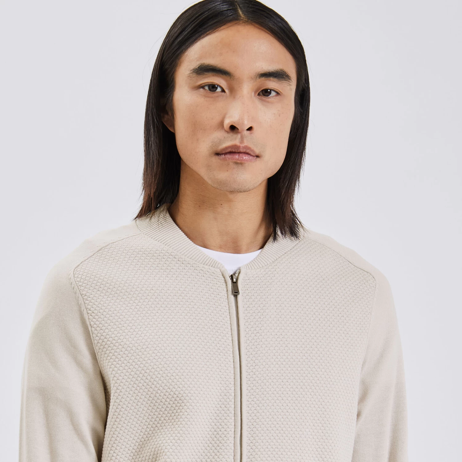 Le combo de deux mailles différentes en fait une pièce unique dans le vestiaire masculin.