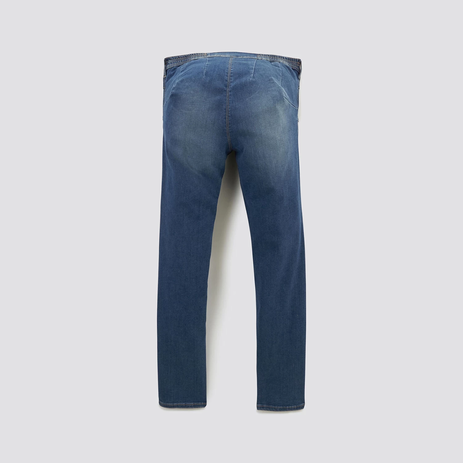 Ce jean dispose d’une forte élasticité pour un confort maximal, en évitant au maximum les frottements, la gêne et les blessures. Le coloris 11235 est doté d’une ceinture avec fermeture scrach mais avec un faux bouton, pour plus de style. Il possède également un passant pour facilité la fermeture.