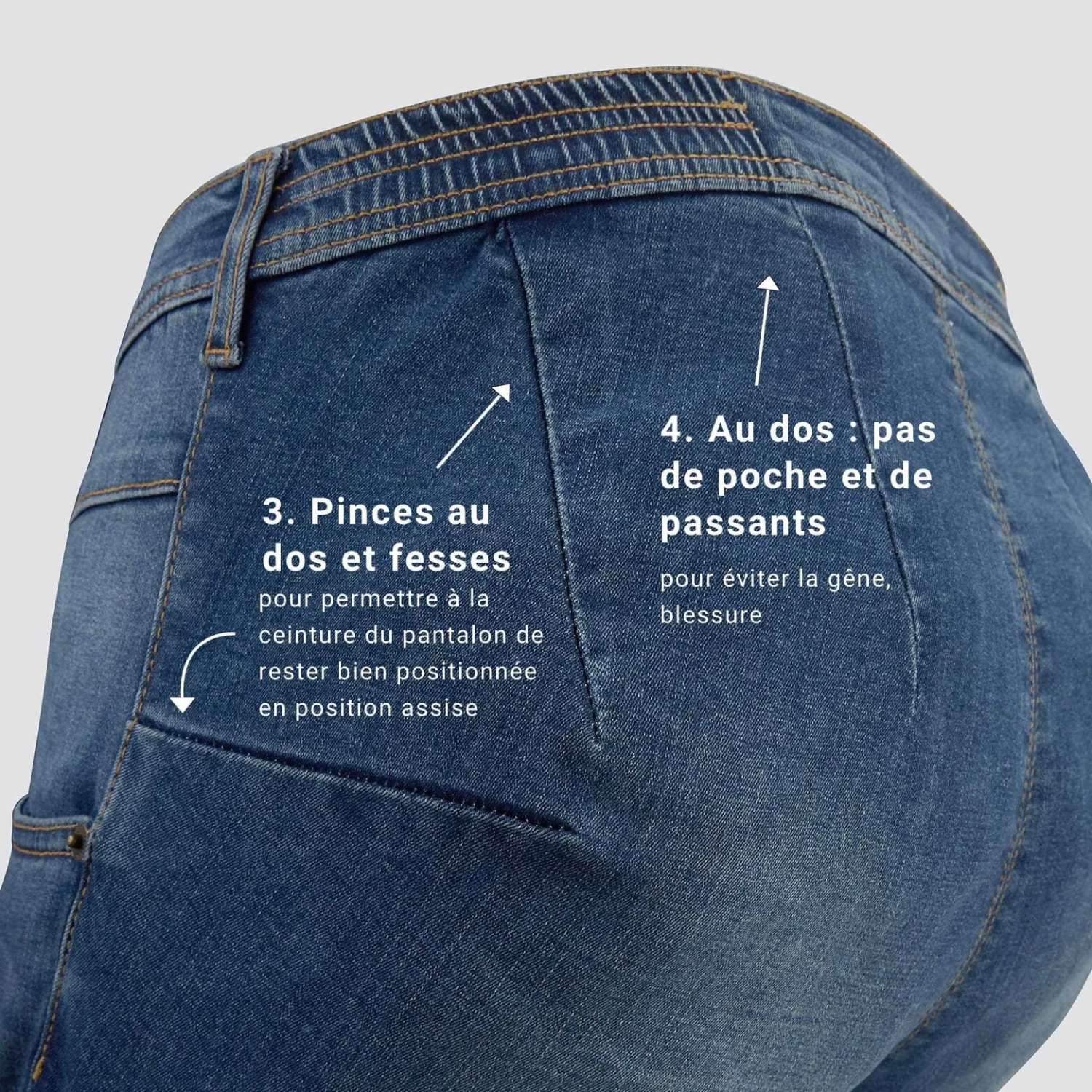 - Arrière du pantalon large et profond pour un confort optimum assis