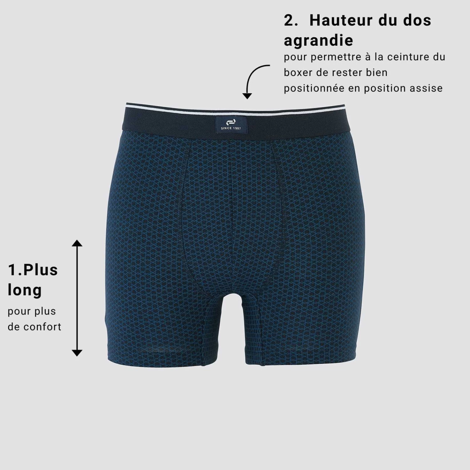 La coupe au dos a été légèrement revue pour éviter l’abaissement de la ceinture en position assise et apporter plus de confort. Ces boxers sont conçus avec du coton issu de l’agriculture biologique, pour que leur impact environnemental soit réduit pendant toute leur durée de vie et même après.
