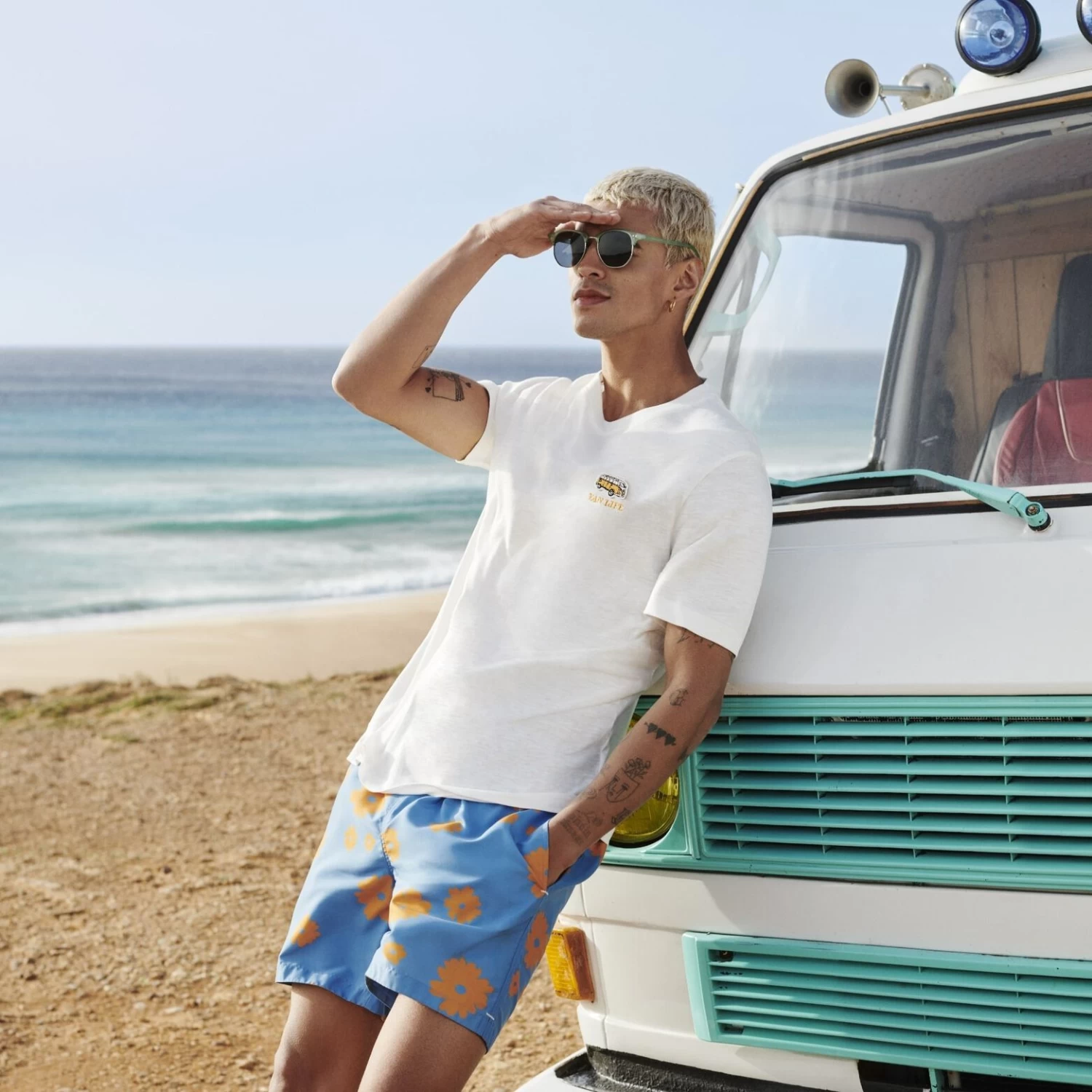 Le mannequin mesure 1m86 et porte une taille M.