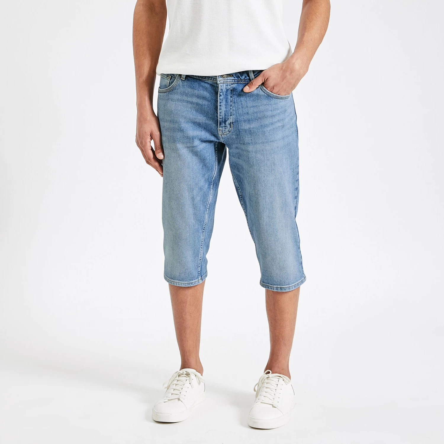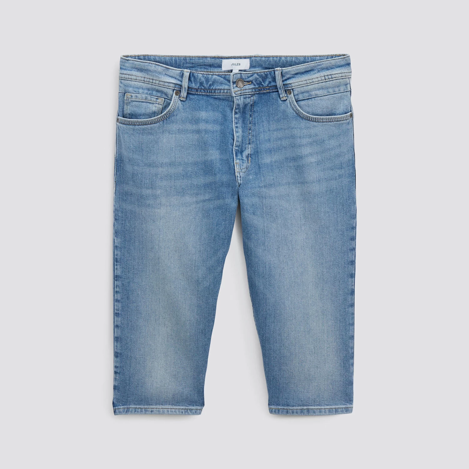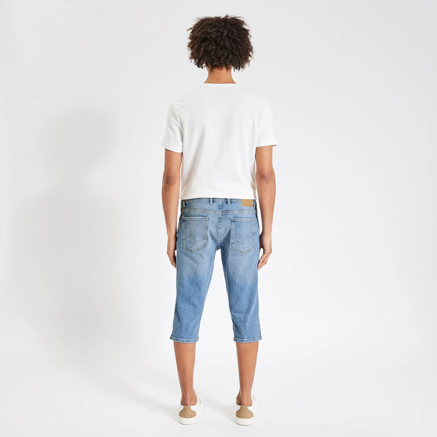 Un pantacourt en denim, qui arrive sous le genou, parfait pour cet été. Sa matiÚre, composée en partie de coton recyclé, assure une durabilité dans le temps.