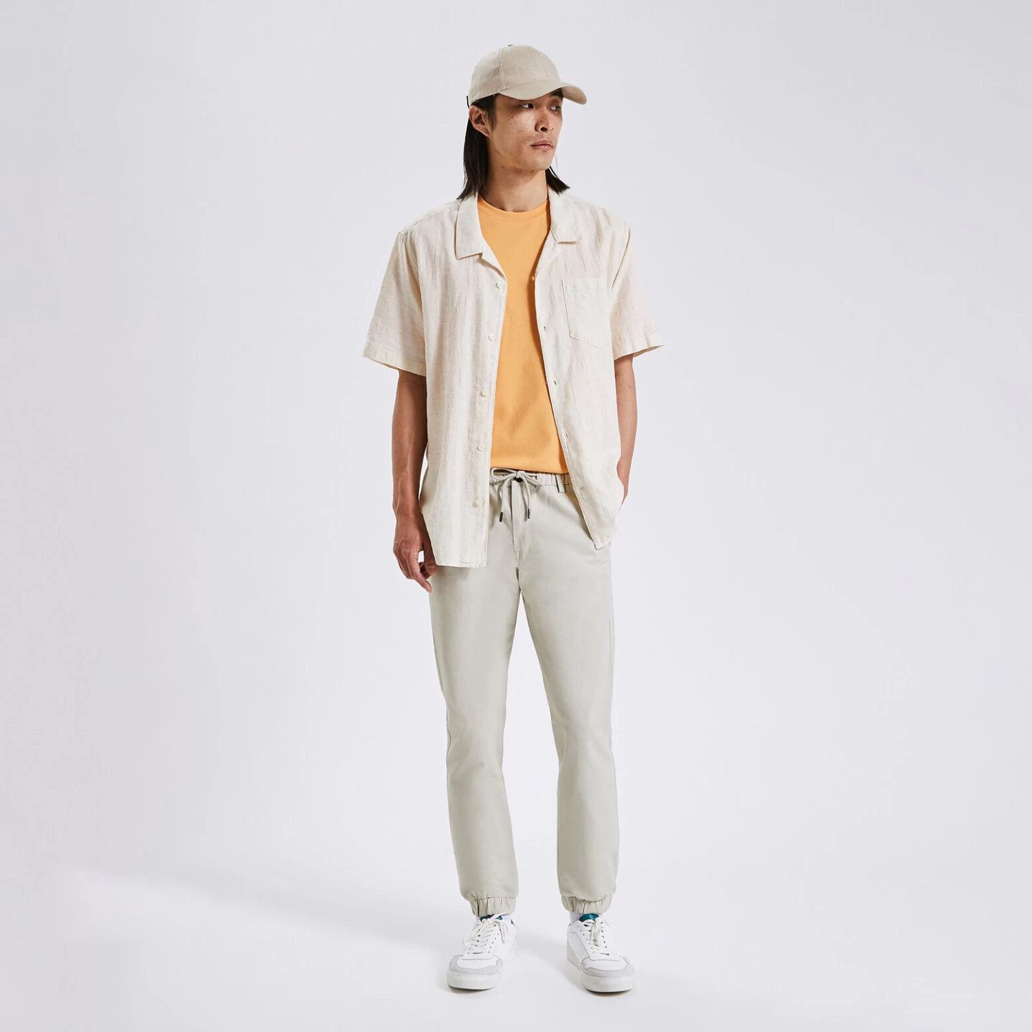 Le pantalon chino à taille élastiquée, indispensable du vestiaire masculin, se porte en mode décontracté. Il s’associe parfaitement avec un tee-shirt ou un sweat.