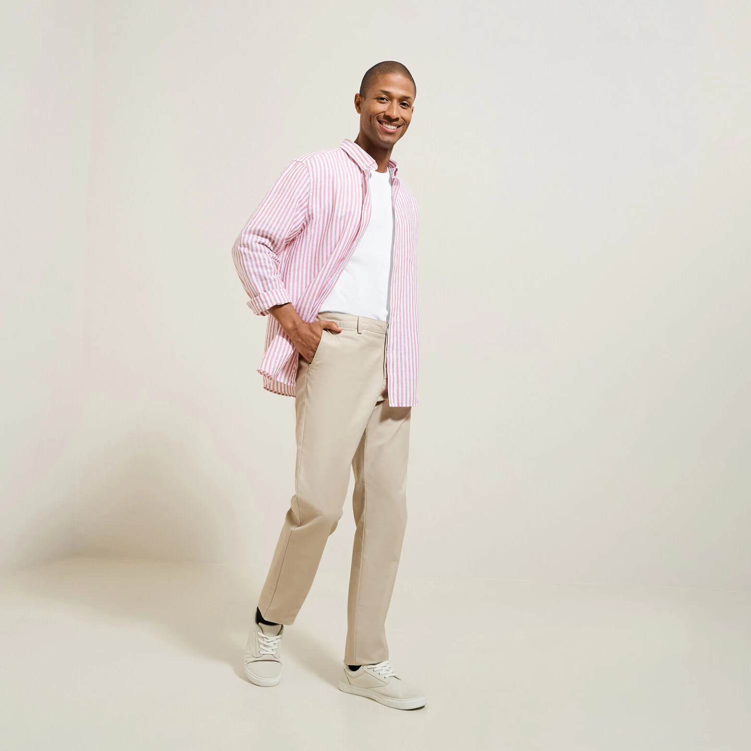 - Coupe regular, coupe droite, élargie sur toute la jambe