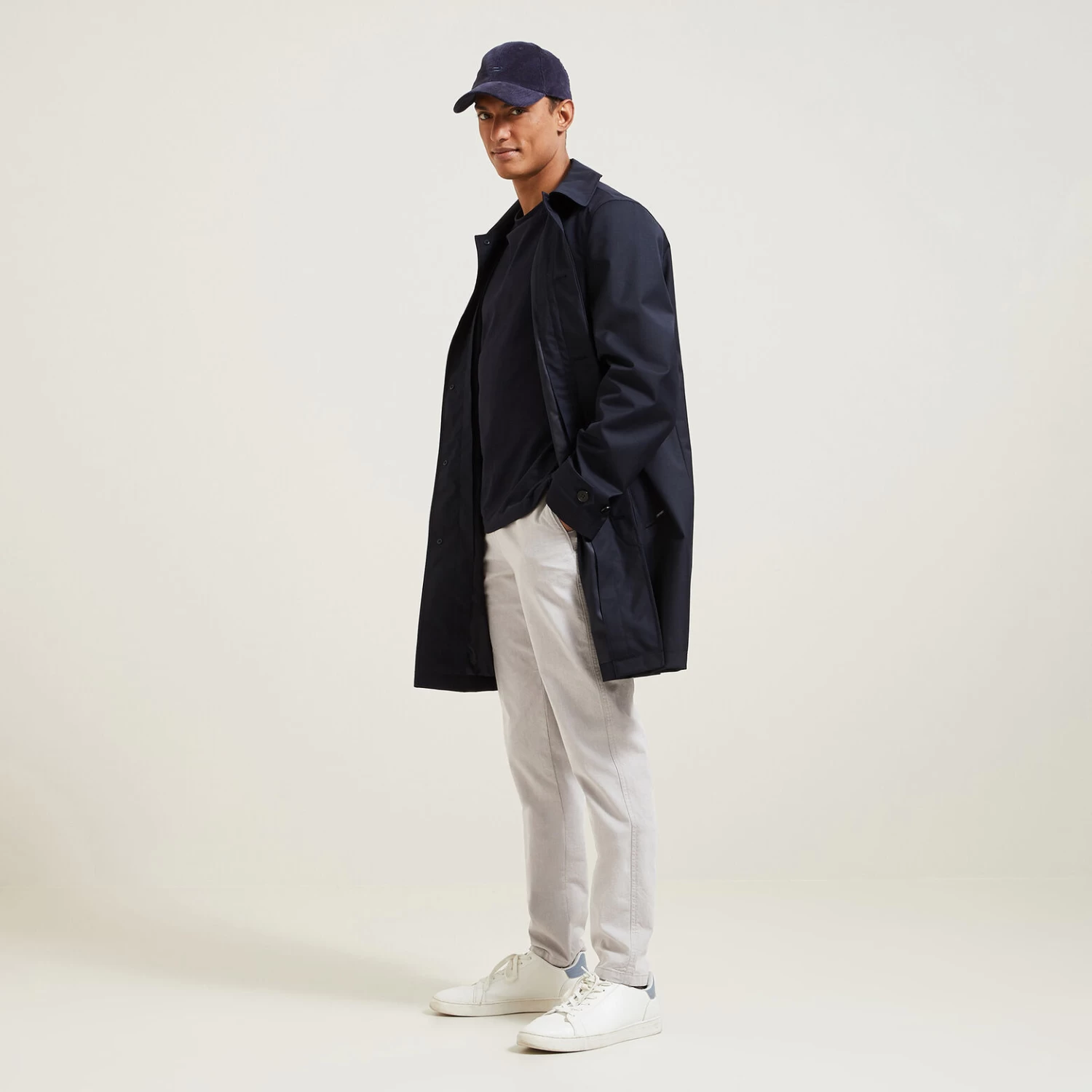 Ce pantalon chino contient 3% d’élasthanne, pour un confort maximal.