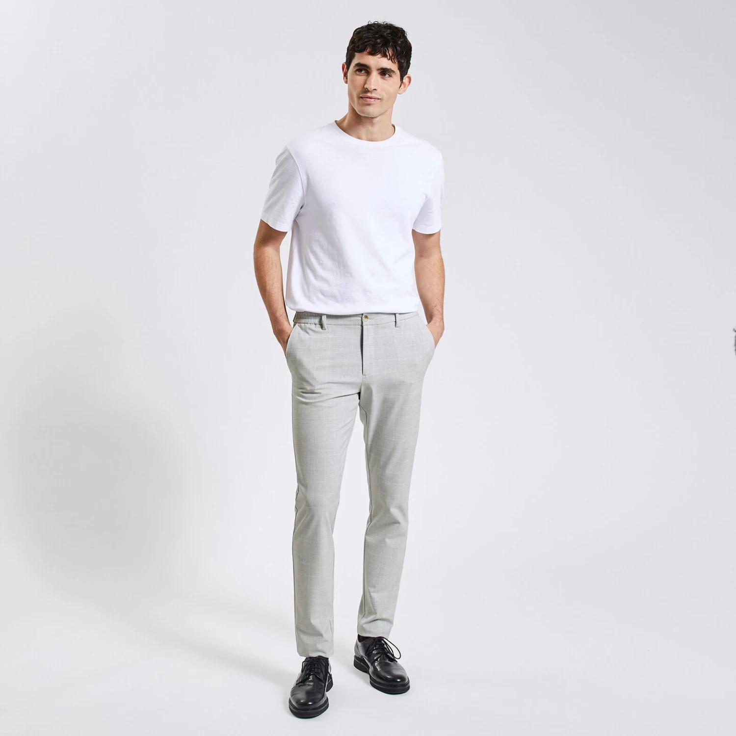 Avec sa taille élastiquée, ce pantalon slim chino bi stretch à carreaux deviendra rapidement indispensable pour une tenue chic et souple.