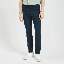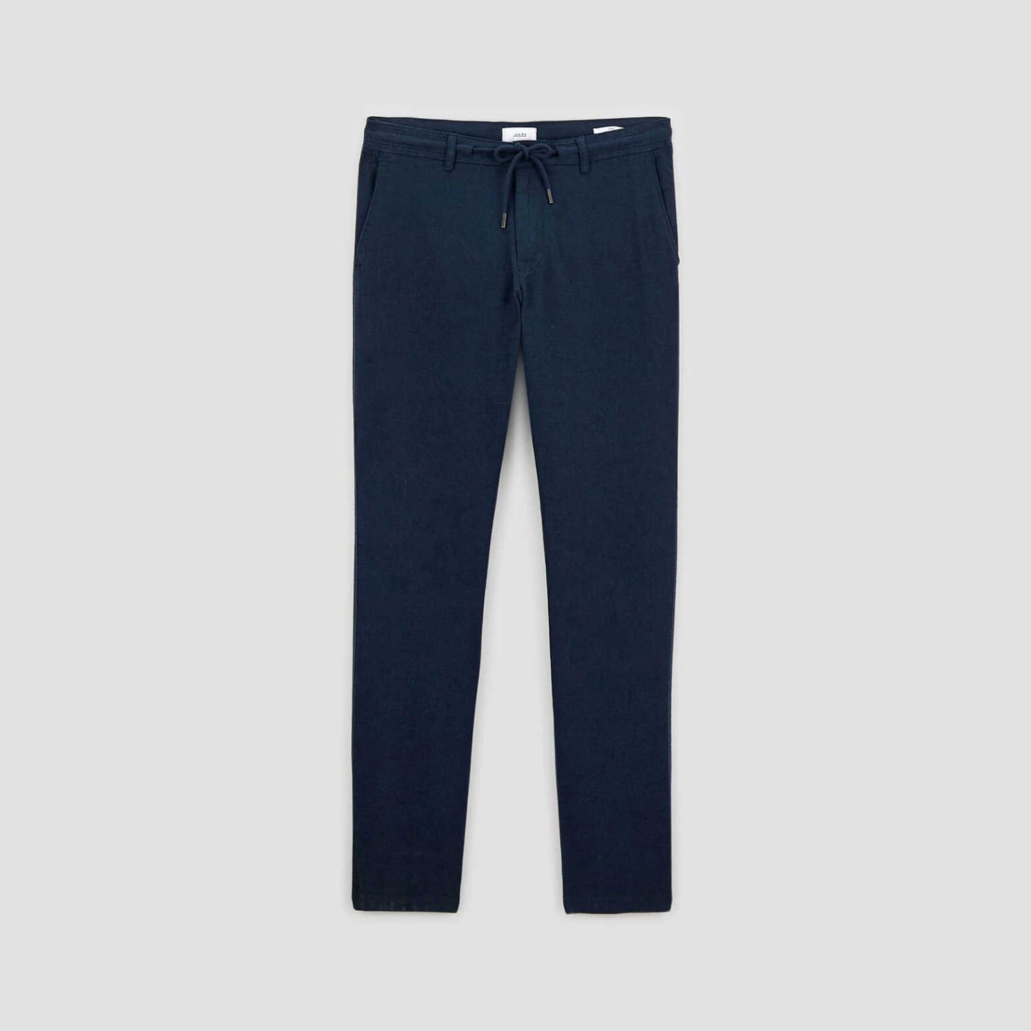 Ce pantalon chino en coton lin, idéal pour l’été, s’associe parfaitement avec une chemise ou un polo.
