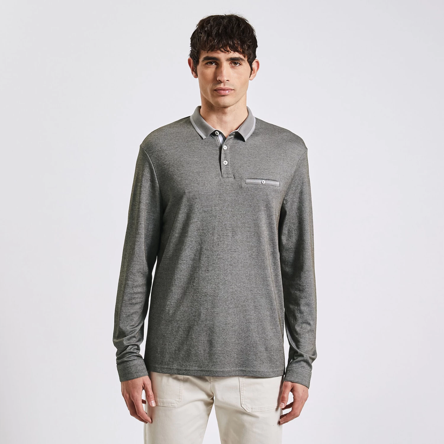 Ă mi-chemin entre le polo et la chemise, ce polo manches longues faux uni est un bon pion quand vous souhaitez ĂȘtre casual mais pas trop, avec une coupe cool et des dĂ©tails chic !