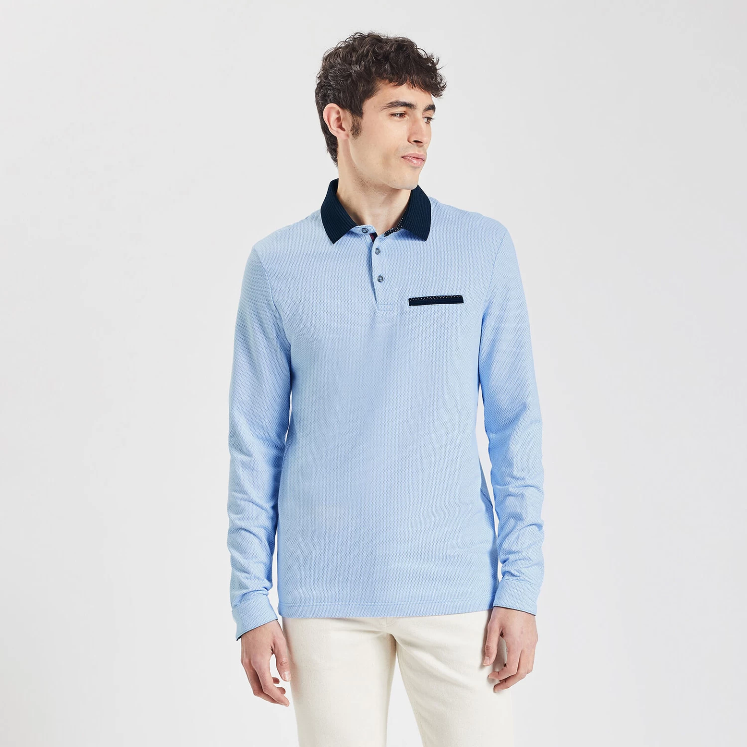 Véritable basique du vestiaire masculin, ce polo jacquard à manches longues apporte une touche élégante en toutes circonstances !