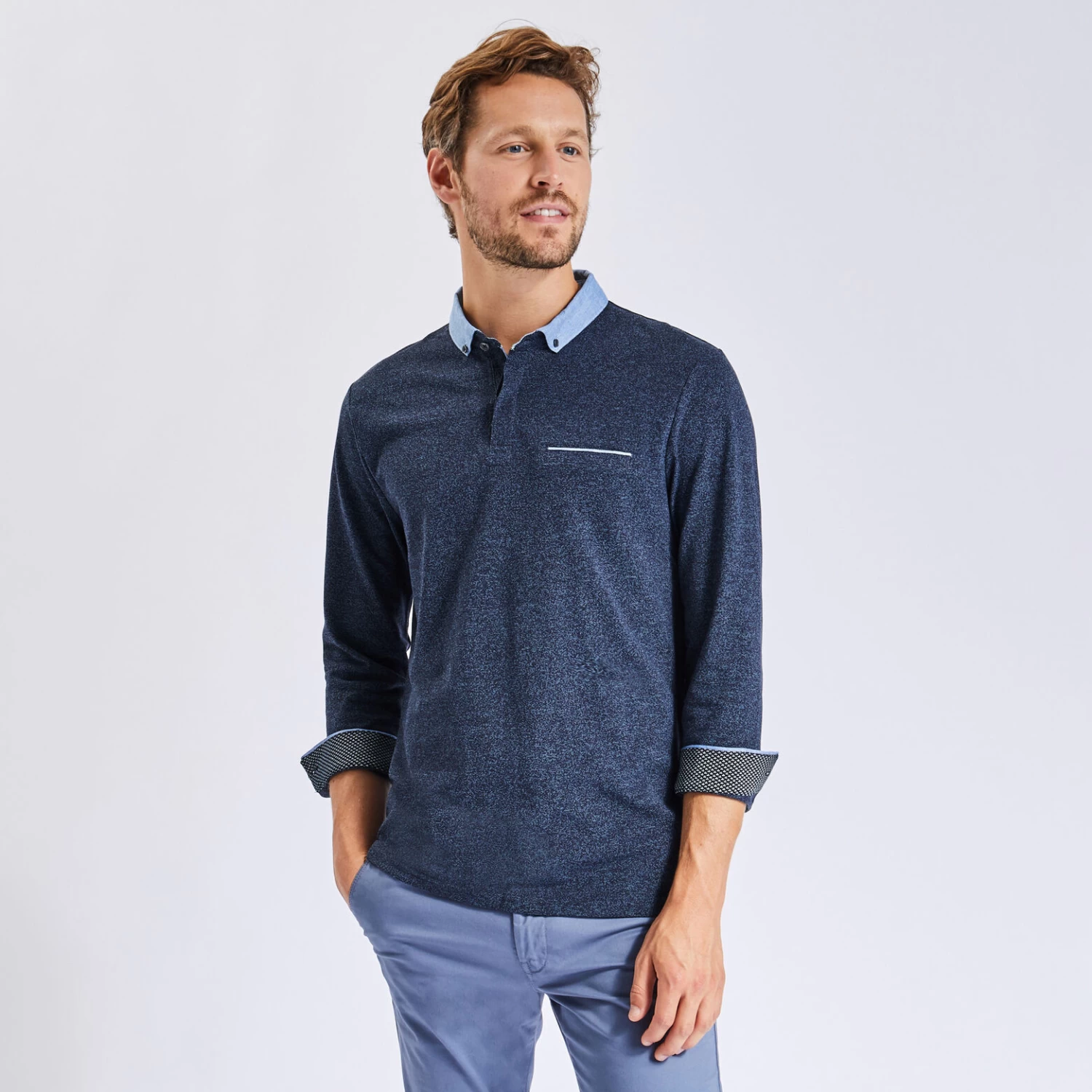 Ce polo à manches longues est confectionné dans une belle maille piquée. Avec son col en oxford pour un effet chemise, il offre un style chic et élégant.