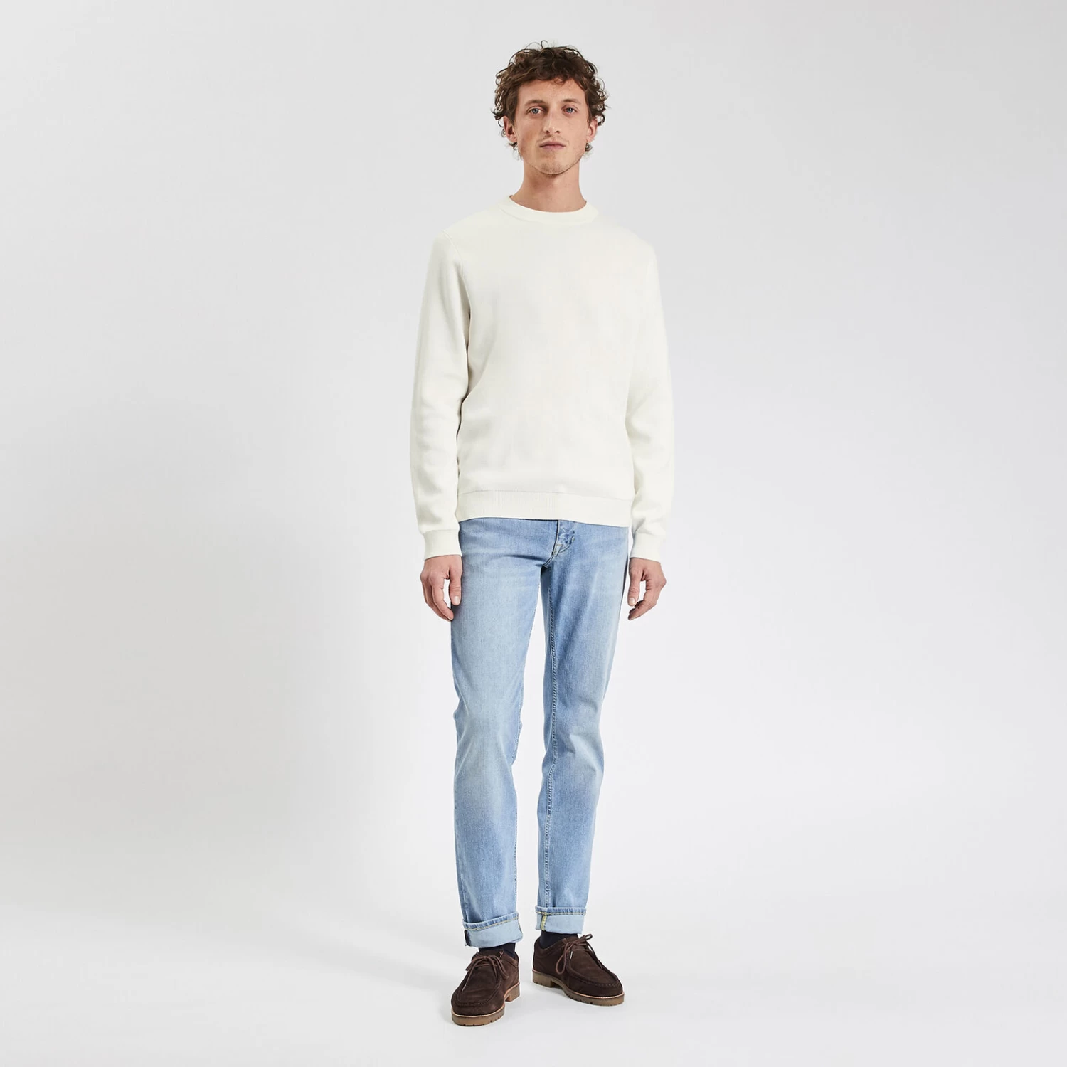 Ce pull en jersey épais et coutures solides avec un toucher doux… un pull à l’épreuve du temps.