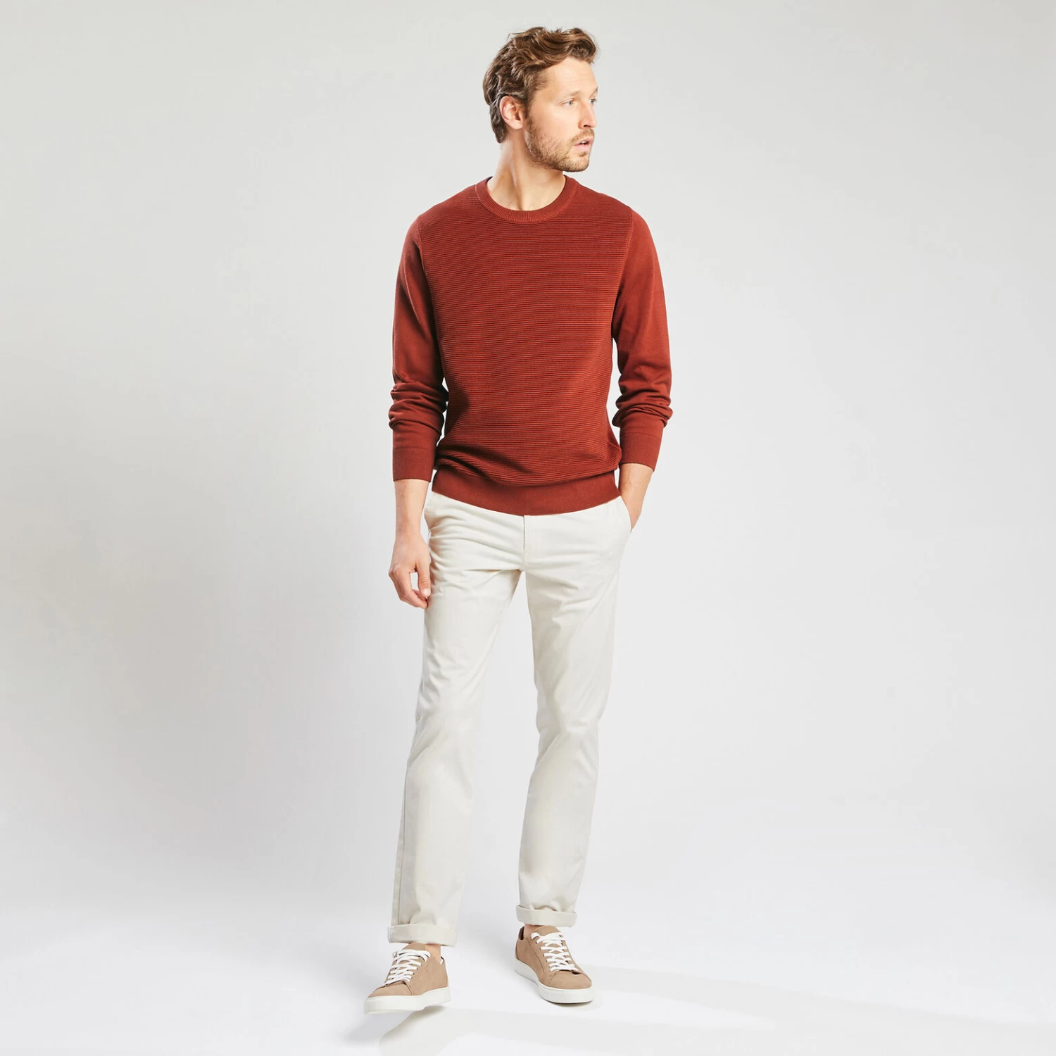 - Coupe regular, ni trop ajustée ni trop large avec un tombé droit