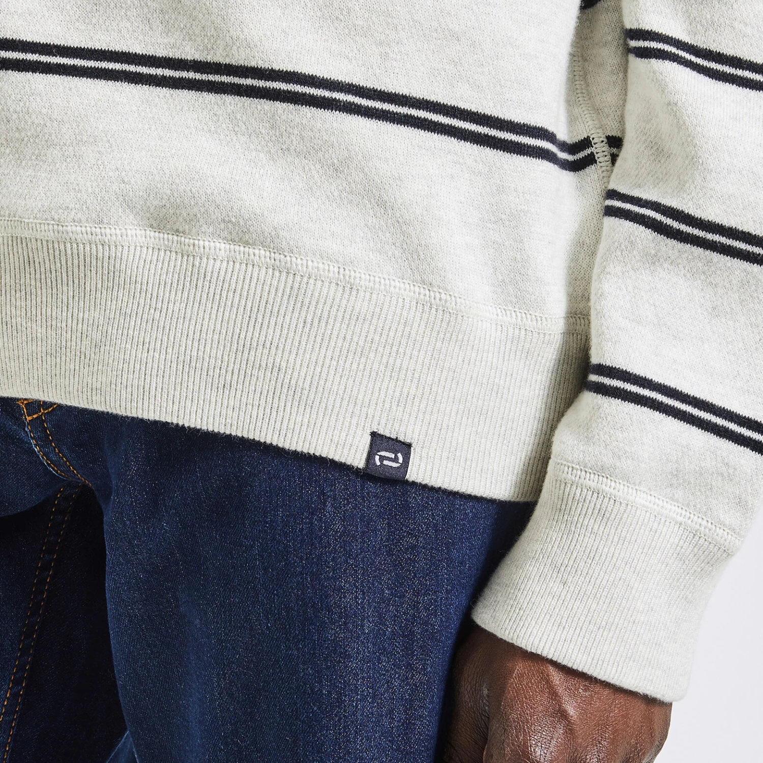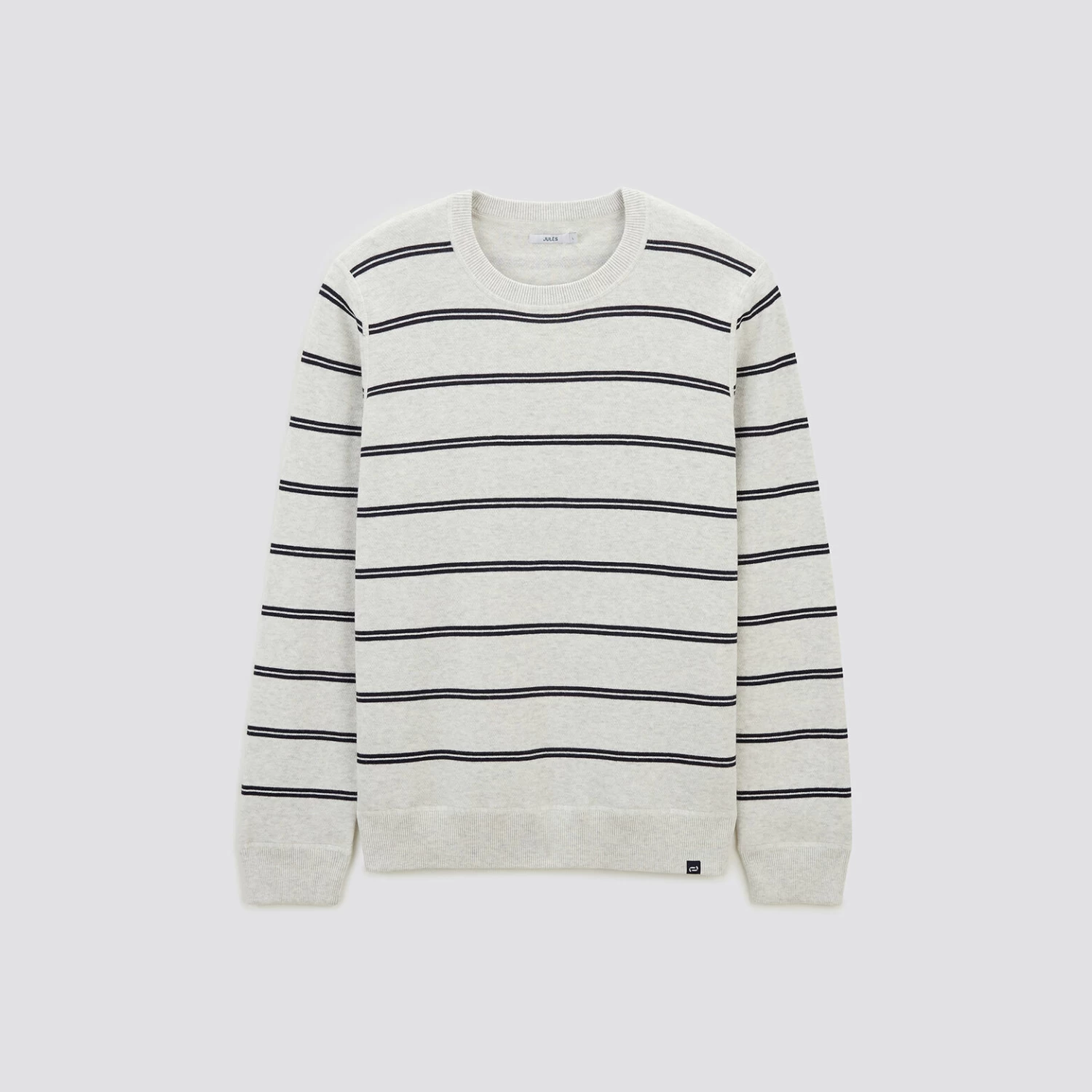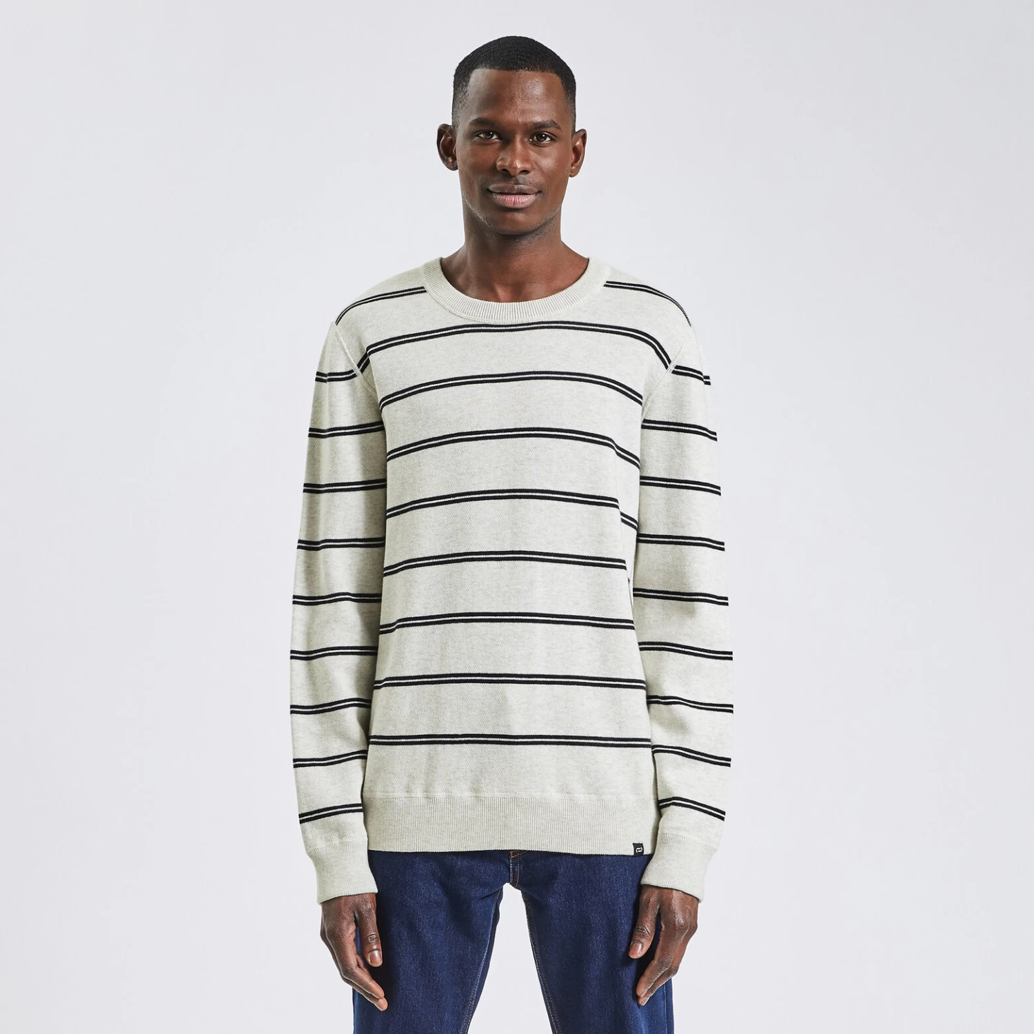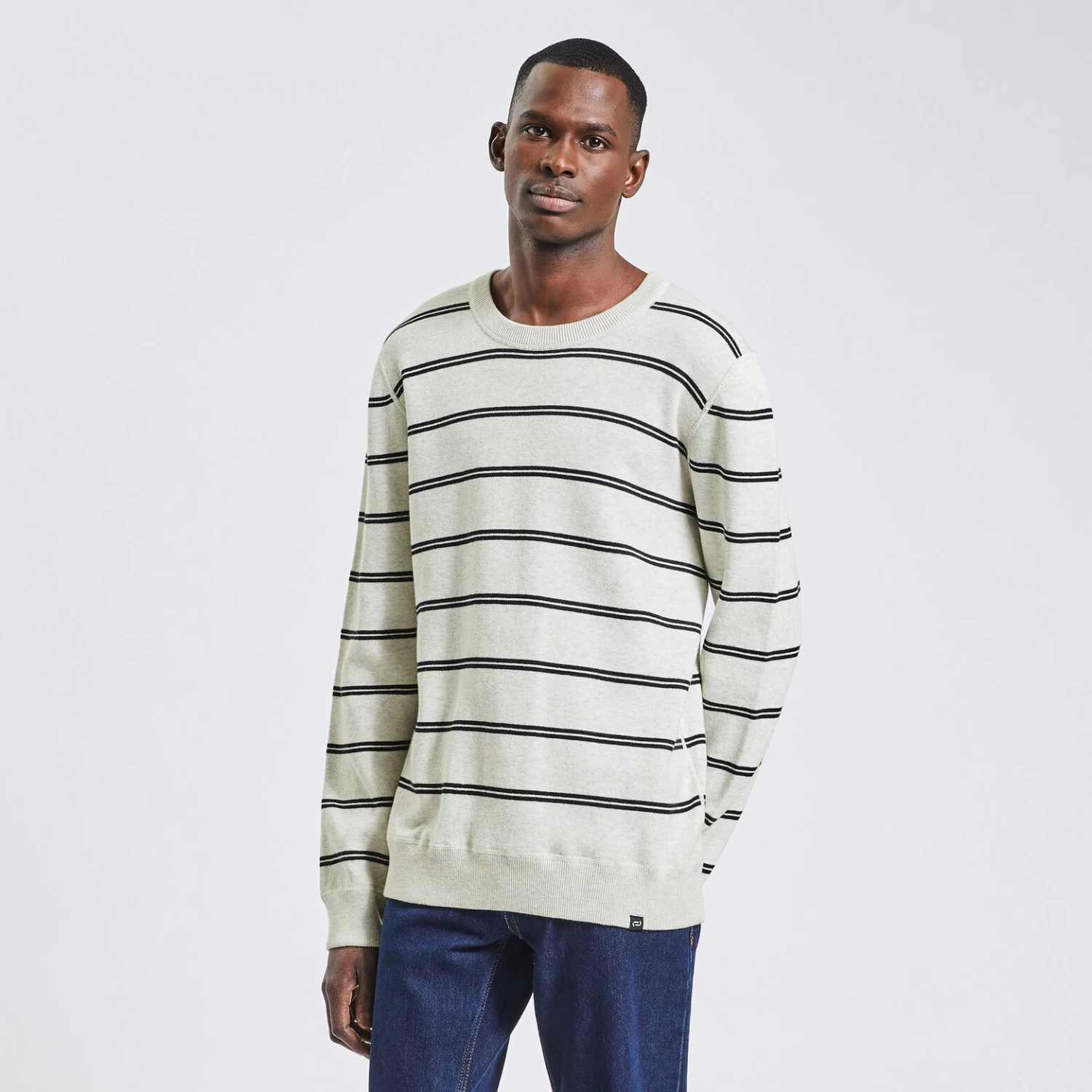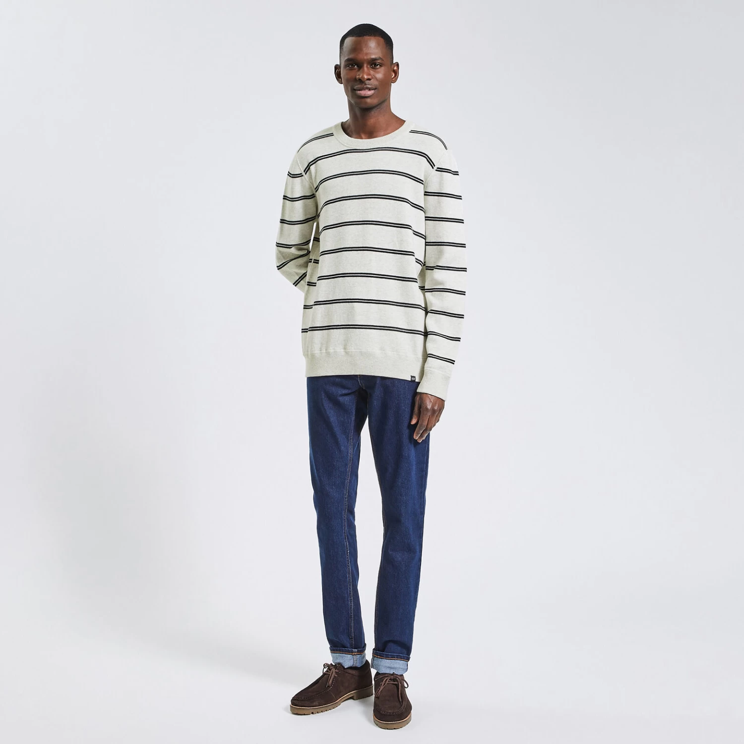 Ce pull à rayures s’associe aussi bien avec un jean qu’avec un chino, pour un allure décontractée.
