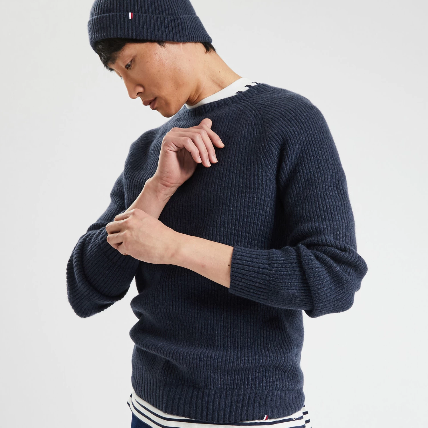 Ce pull en cachemire et laine mĂ©rinos tient chaud lorsqu’il fait froid, et Ă©vacue l’humiditĂ© de la transpiration lorsque les tempĂ©ratures remontent. De plus, il est fabriquĂ© en France !