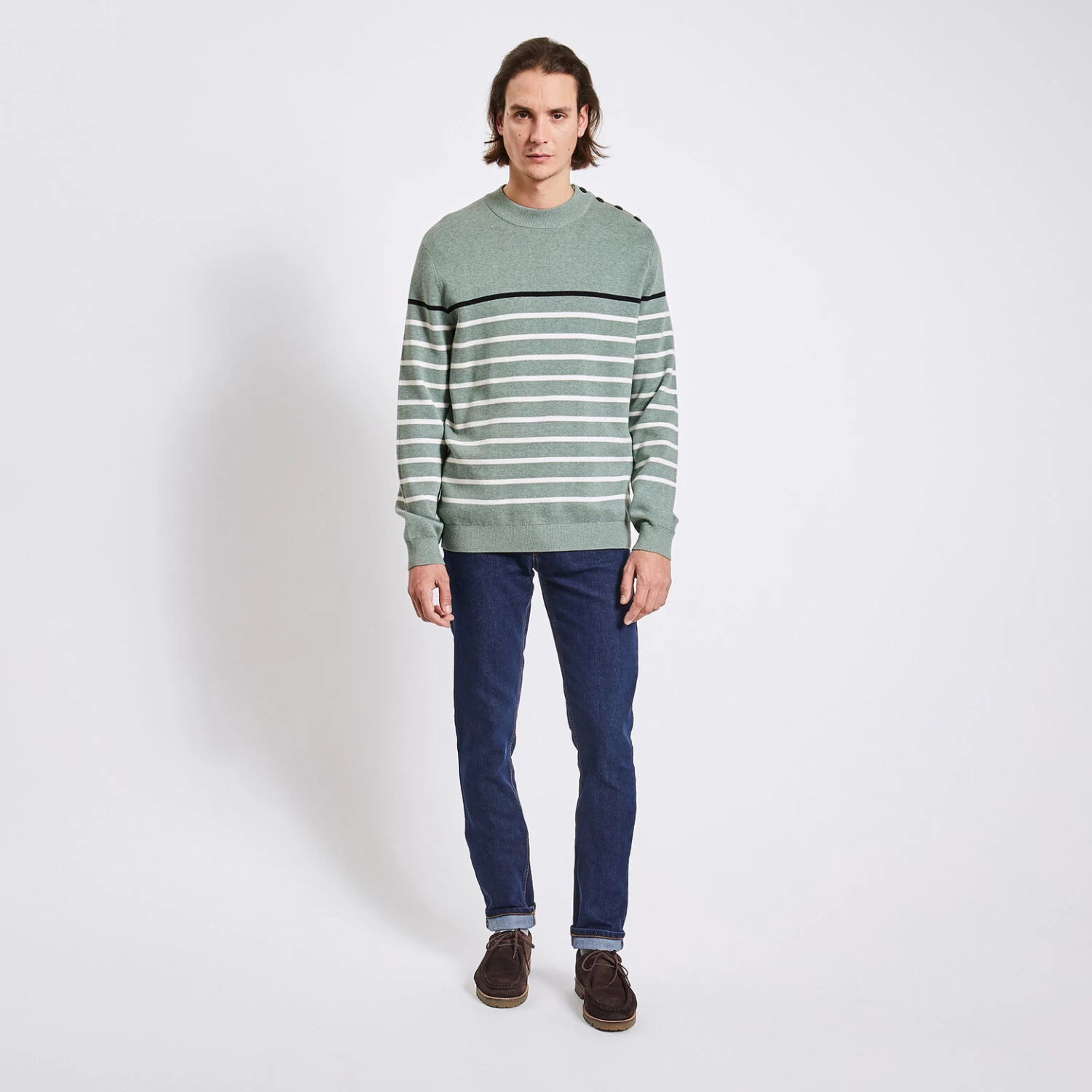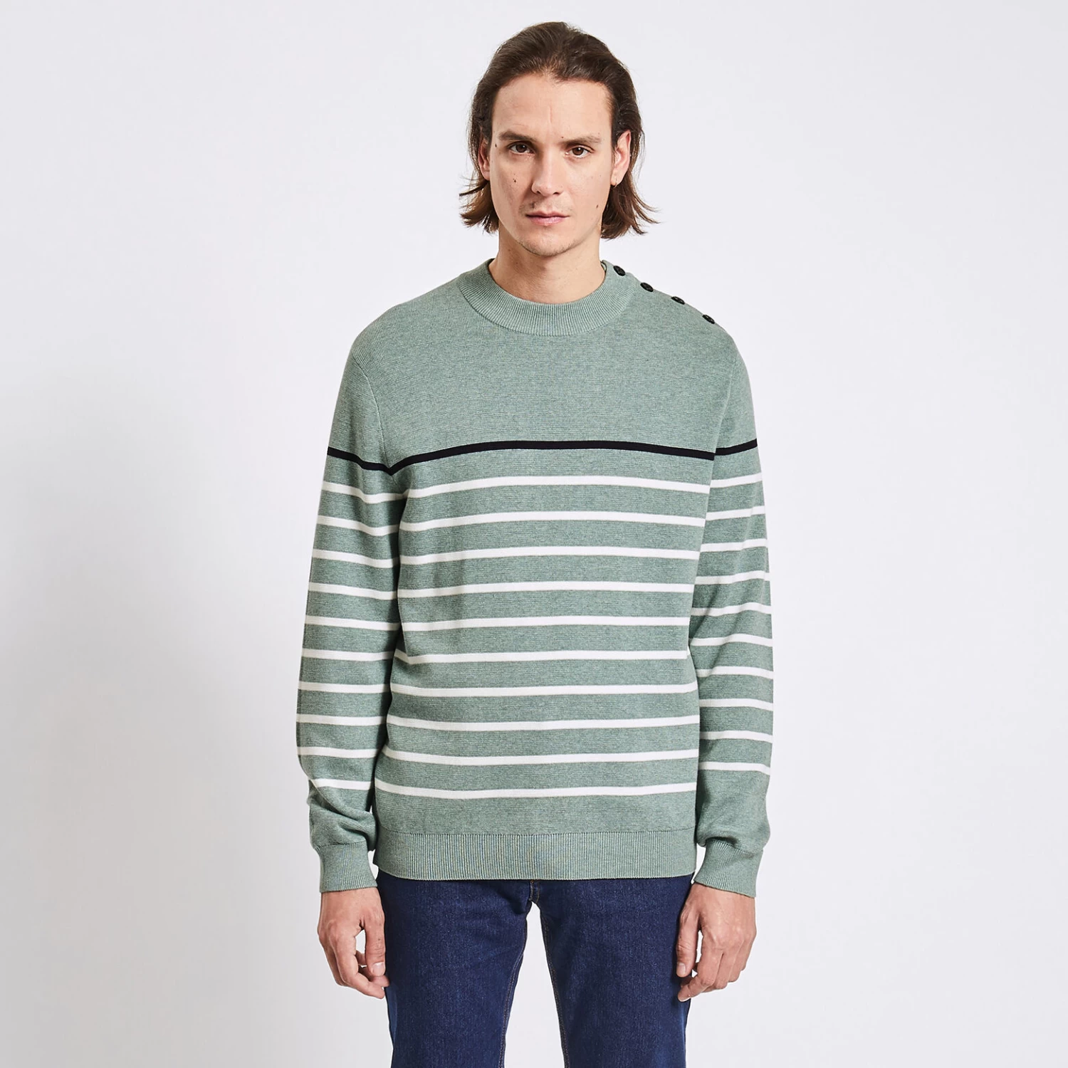 Essayer ce pull marinière, c’est ne plus pouvoir s’en passer ! Matière douce et chaude, coupe simple et intemporelle, il sera un allié du quotidien.