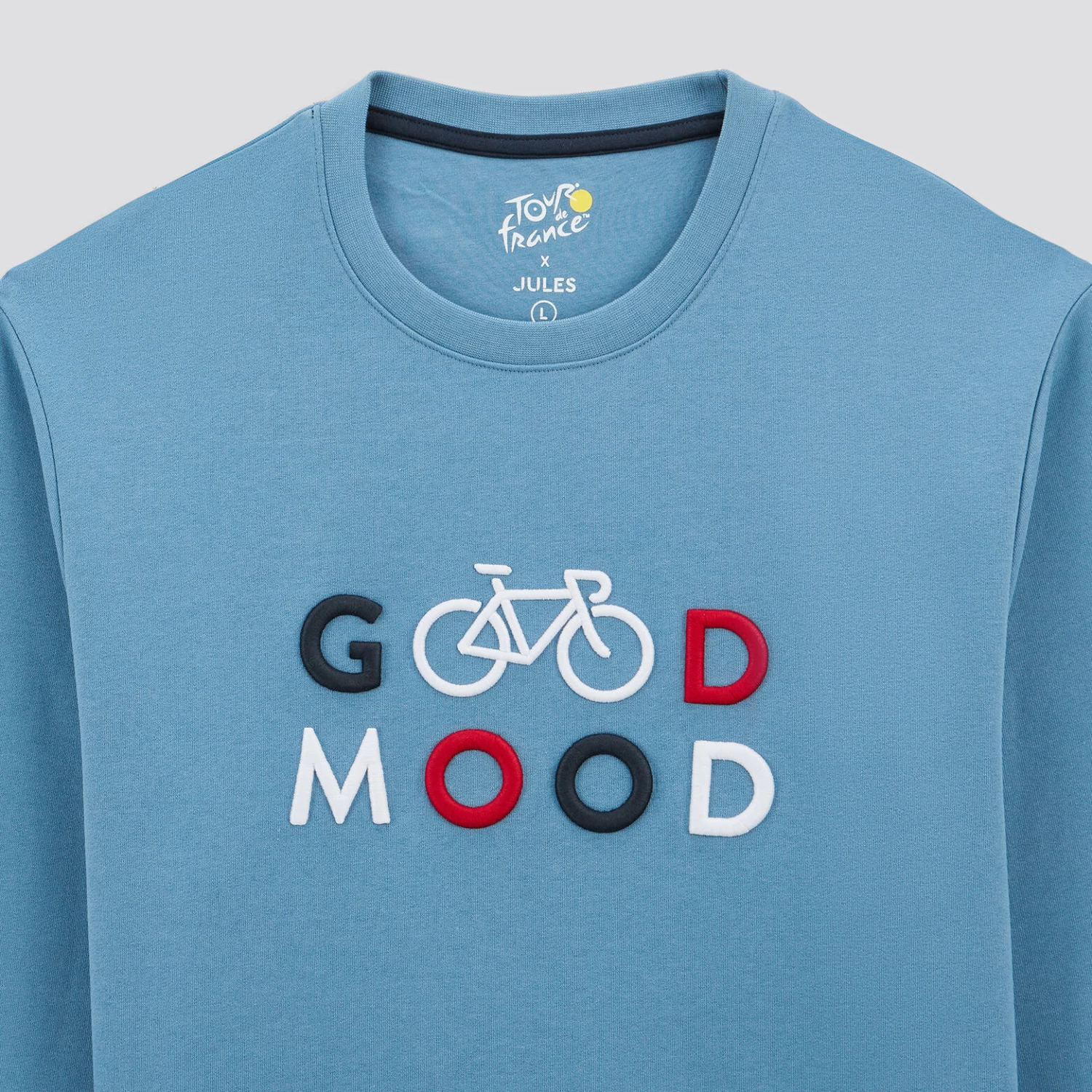 Jules est de nouveau fournisseur officiel du Tour de France. Jules vous propose le sweatshirt sous licence Tour de France avec le message « GOOD MOOD ». Ce modĂšle est rĂ©alisĂ© en molleton de coton et contient du polyester recyclĂ©, il est confortable et facile d’entretien.