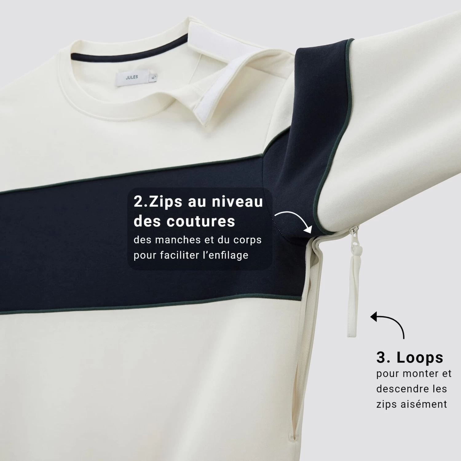 - Ouverture zippée sur les côtés pour faciliter le passage des bras