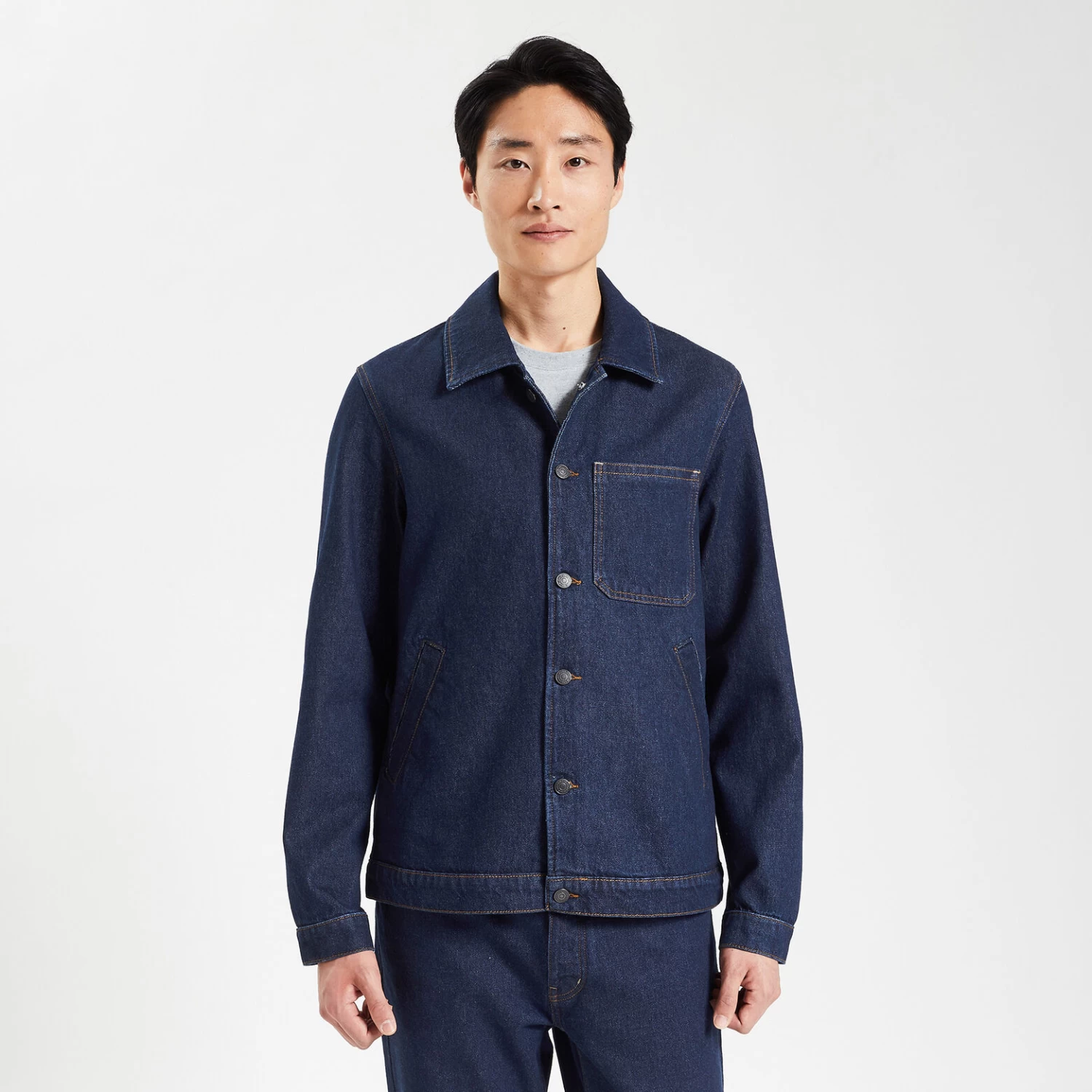 Cette veste en jean est 100% coton et 100% recyclable car mono-composant.