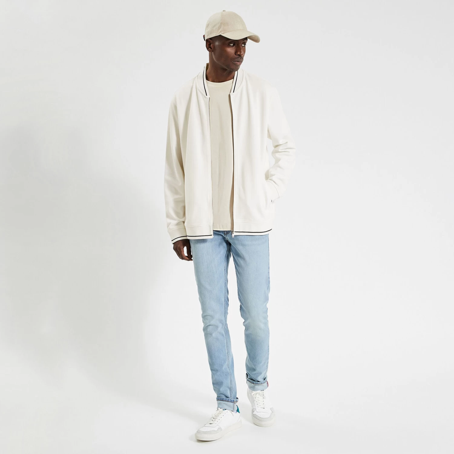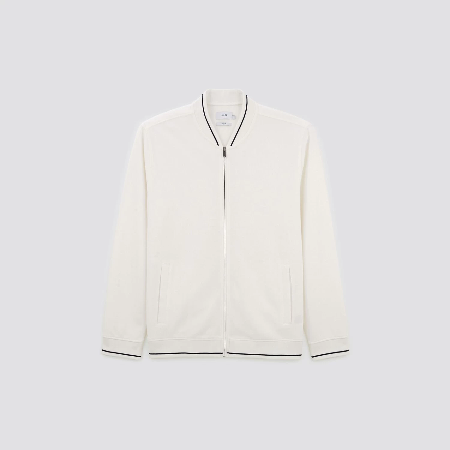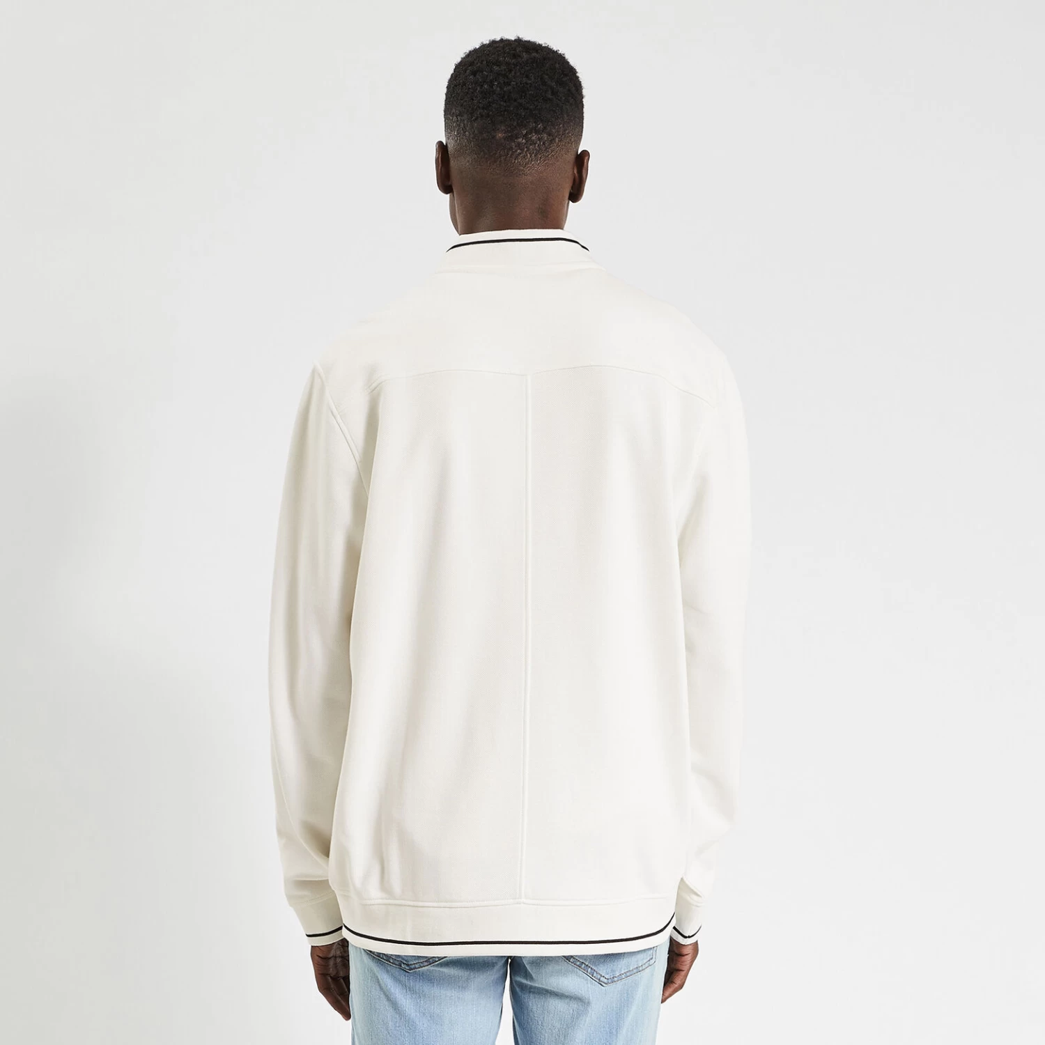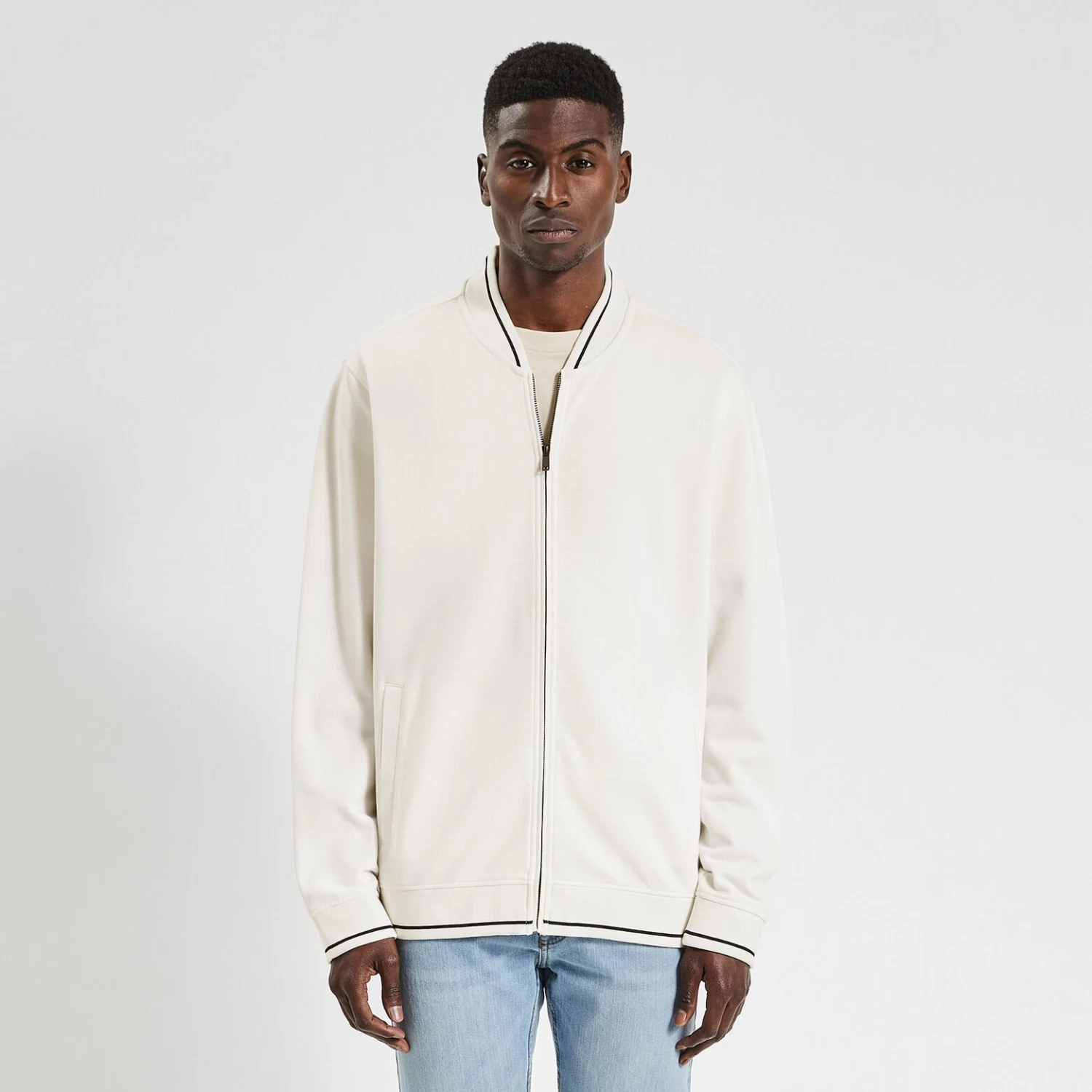 Cette veste zippée en maille, résistante et durable, s’associe facilement à un chino ou un jean.
